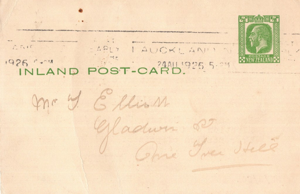 Card: KGV 1½d Yellow-brown (Samuel: AC.5a)