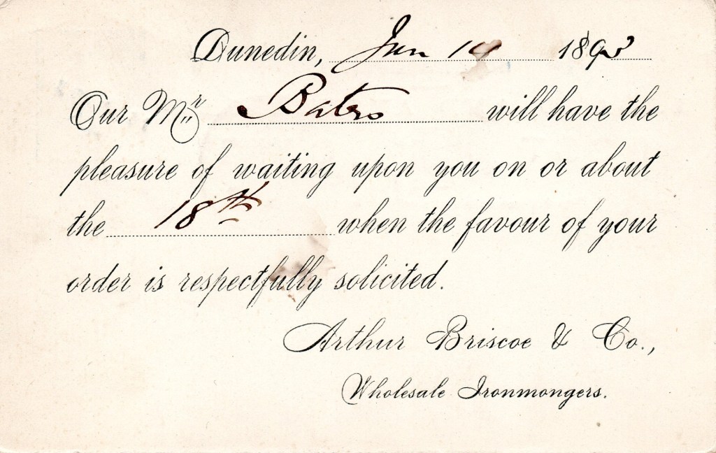 The first Briscoe’s ironmongery was established in Wolverhampton, England in 1768. In 1853 the company started to create branches in the colonies, firstly in Melbourne, then Dunedin in 1862, Sydney in 1878 and Invercargill in 1881.
