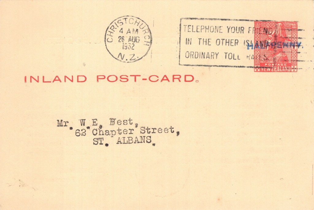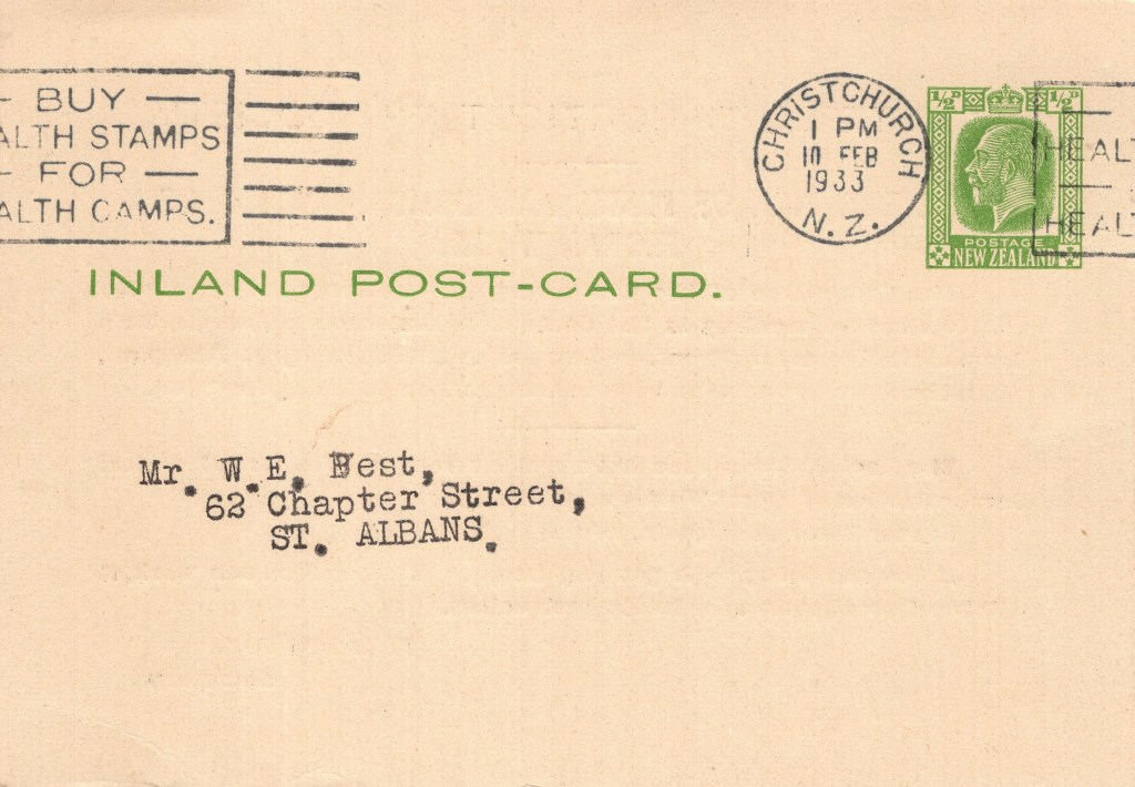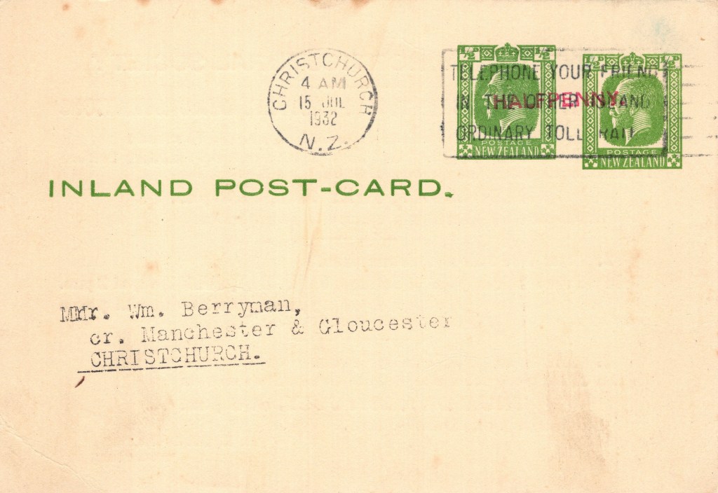 Card: KGV ½d Red on ½d Green + ½d Green (Samuel AC.21a)