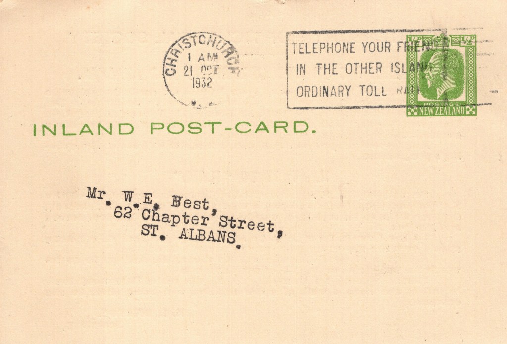 Card: KGV ½d Red on ½d Green + ½d Blue (Samuel AC.23a)