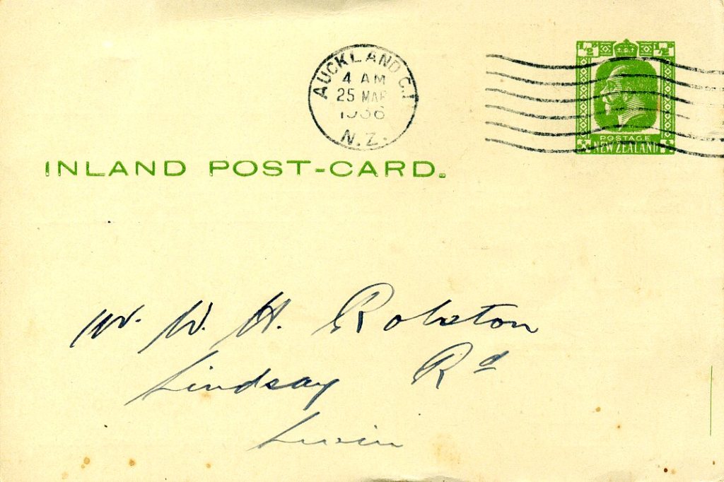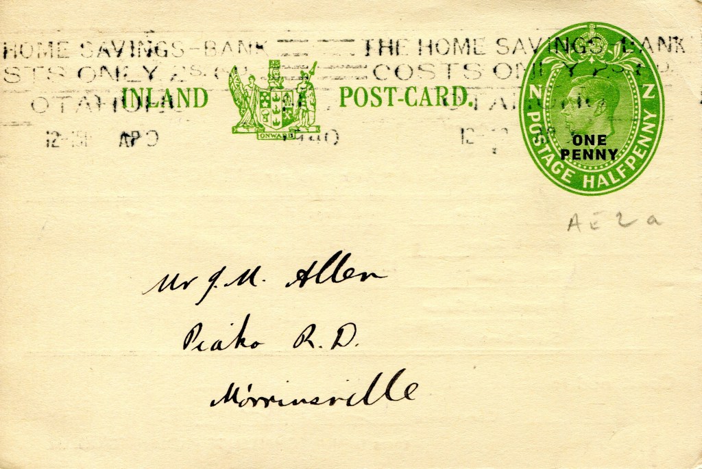 Card: KGVI 1d on ½d Yellow-green (Samuel: AE.2a)