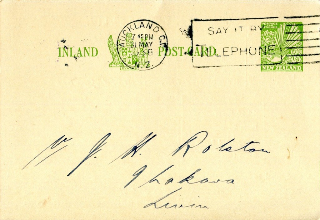 Card: Fantail ½d Green (Samuel: AD.1a)