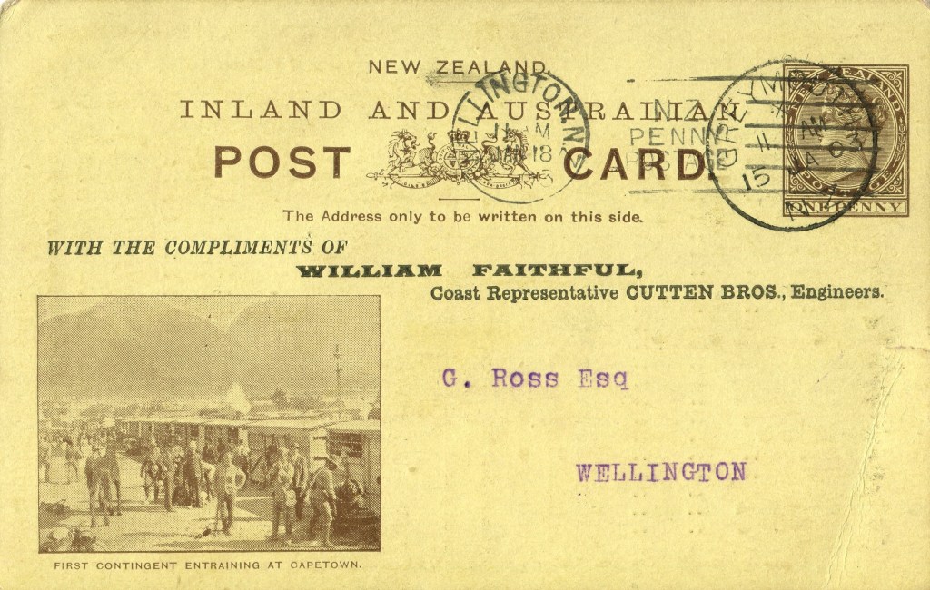 Card: QV 1d Brown – First Contingent Entraining at Capetown (Samuel: AA.10a(a))