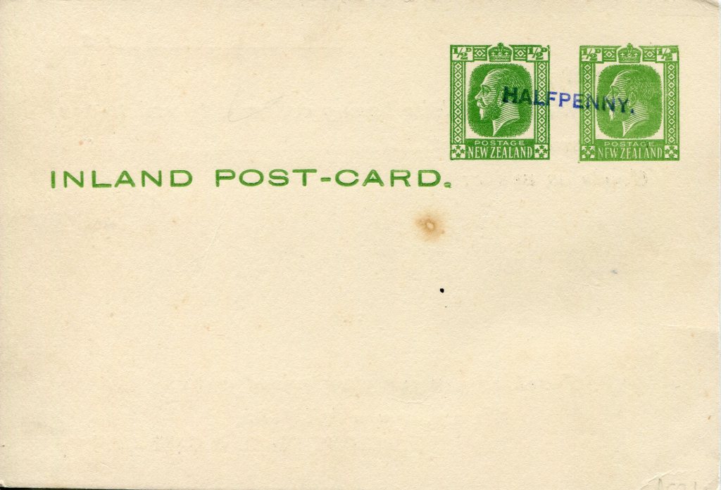 Card: KGV ½d Blue on ½d + ½d Green (Samuel: AC.21a)