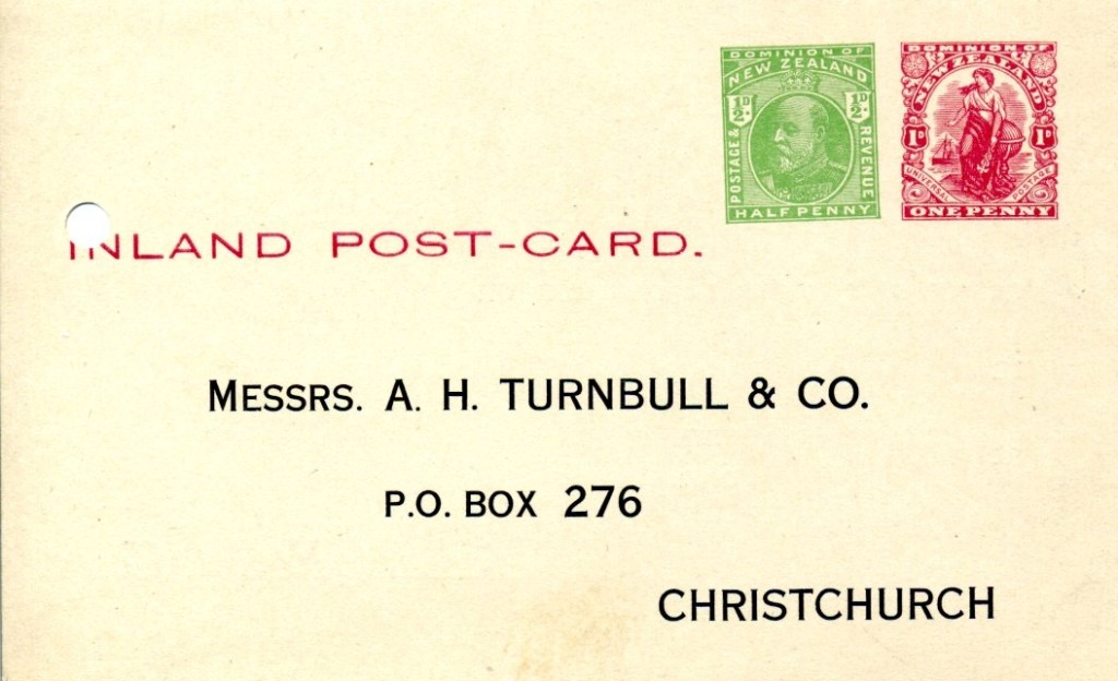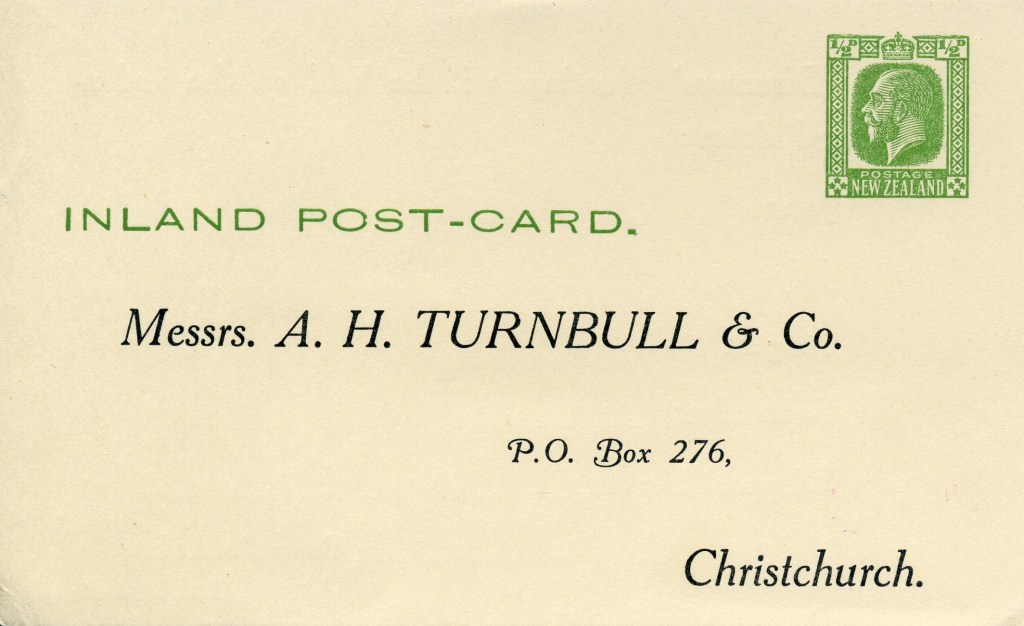 Notes: Printed address for A.H. Turnbull – it is assumed the same card can be found without printed address.
