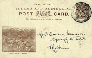 Card: QV 1d Brown – Garden Party at Wanganui (Samuel: AA.10b(o))