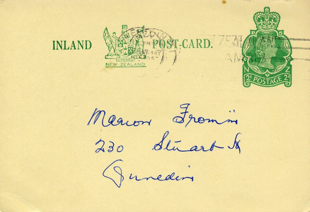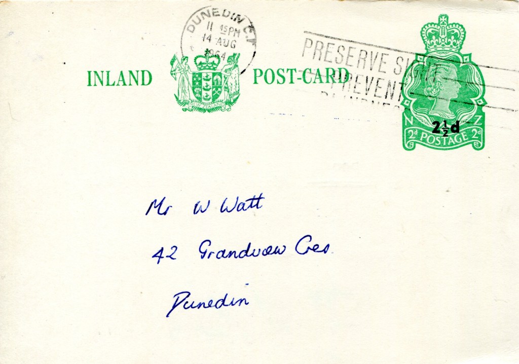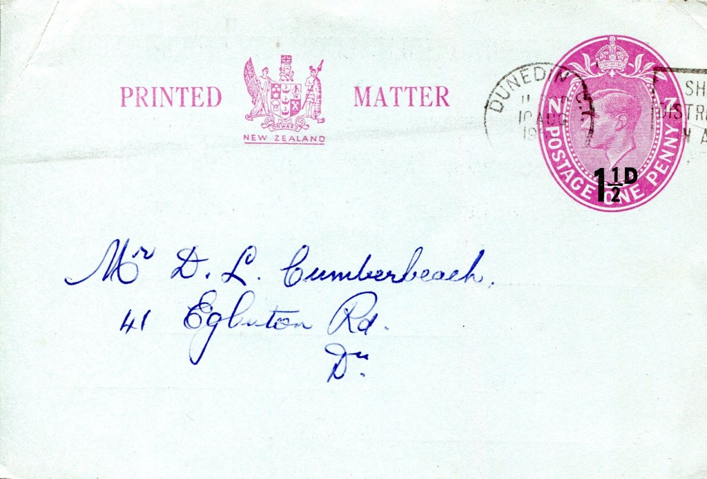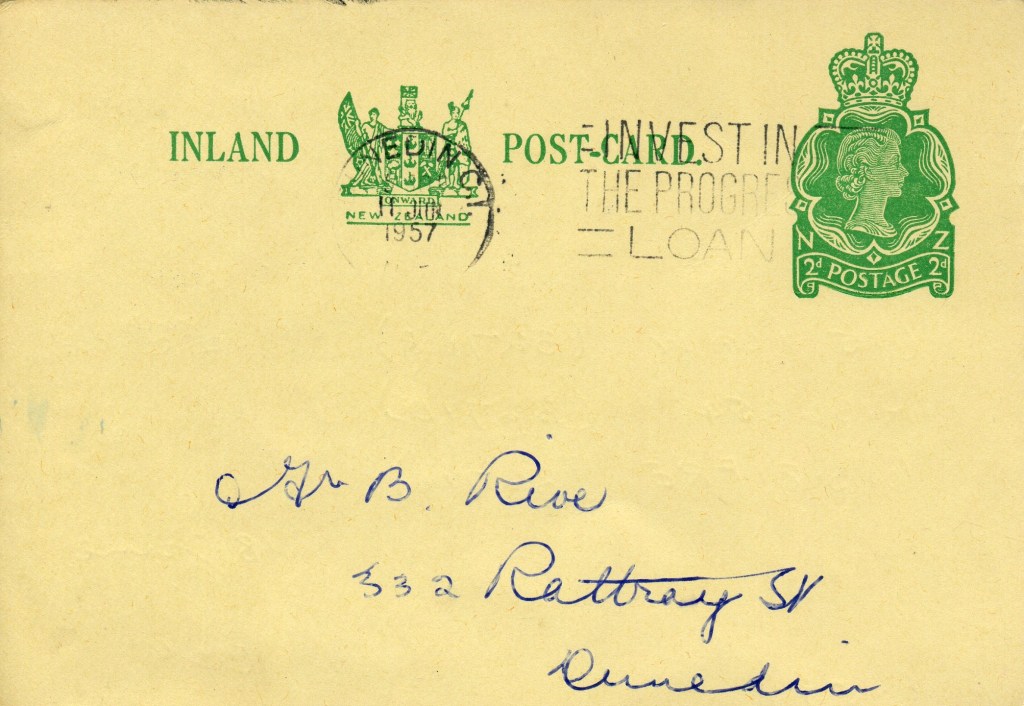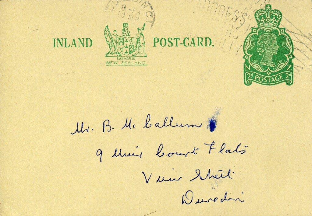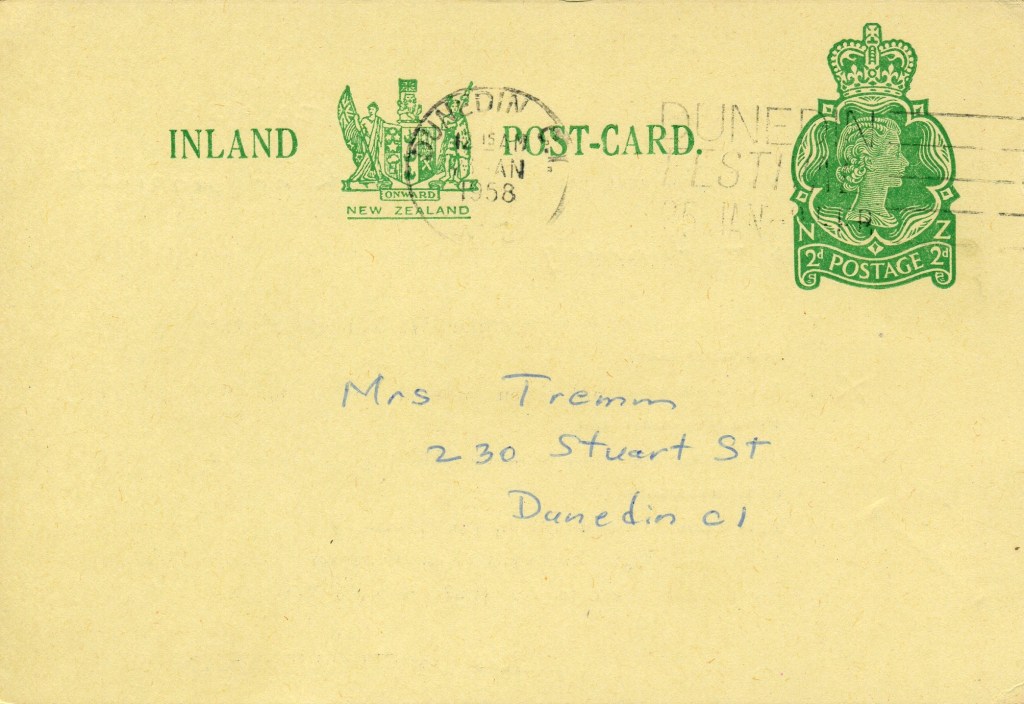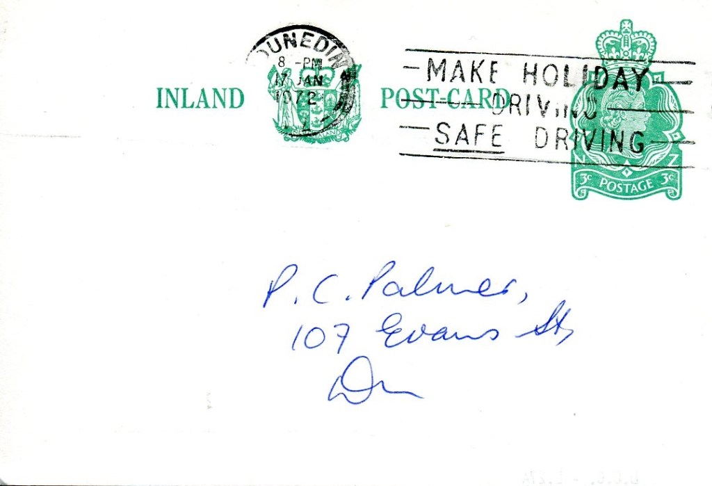 Notes: Samuel (2006) records a printing of 30,000 3c postcards that were Printed to Private Order for Dunedin Public Library in 1971. The above card is printed on a shiny, mottled, surface card stock that differs from the usual card used. It is assumed that this card is one of these previously unrecorded PTPO cards.