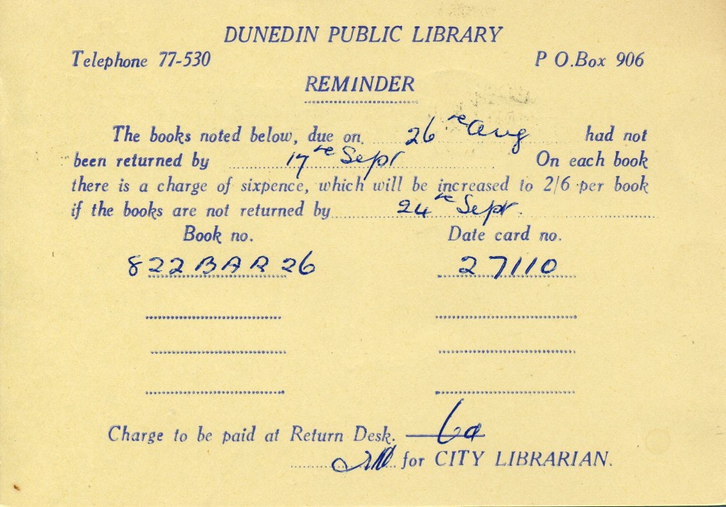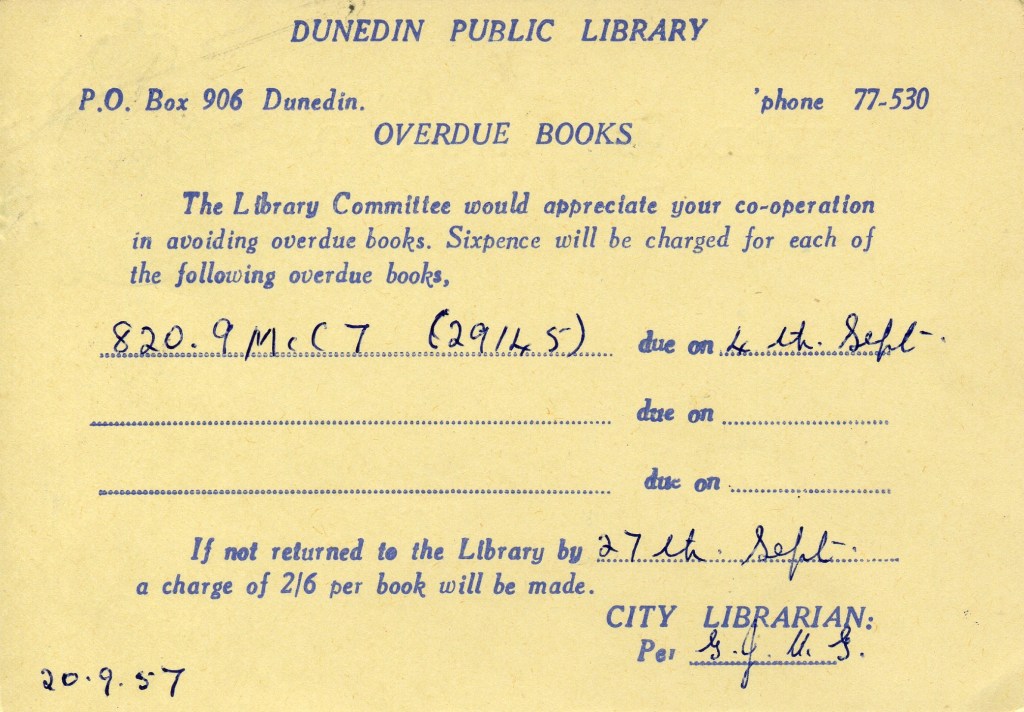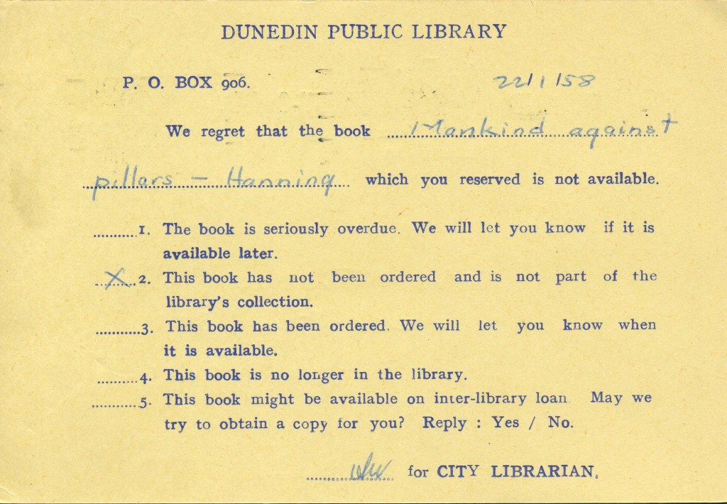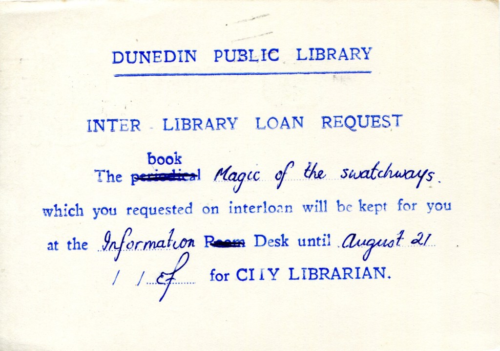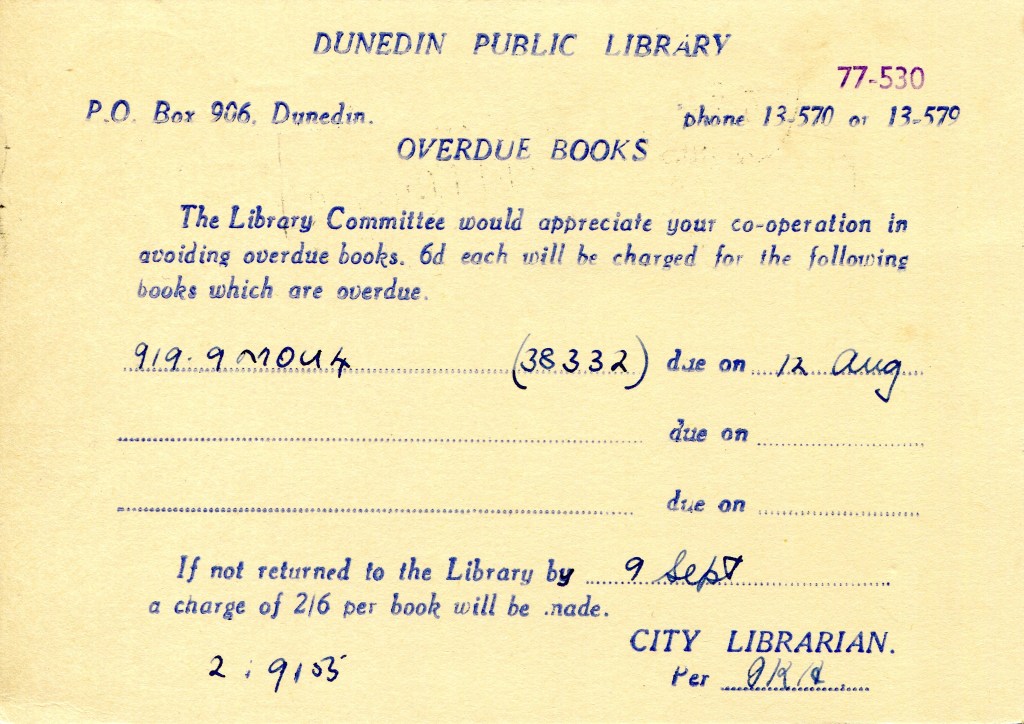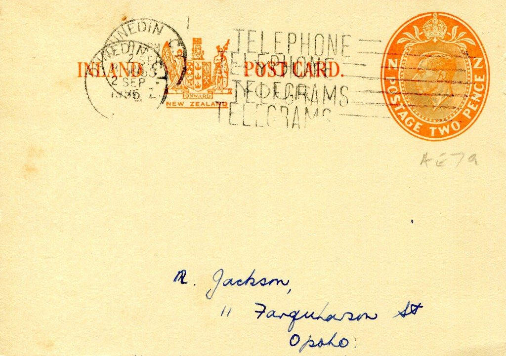 Notes: Samuel (2006) records a printing of 30,000 3c postcards that were Printed to Private Order for Dunedin Public Library in 1971. The above card is printed on a shiny, mottled, surface card stock that differs from the usual card used. It is assumed that this card is one of these previously unrecorded PTPO cards.