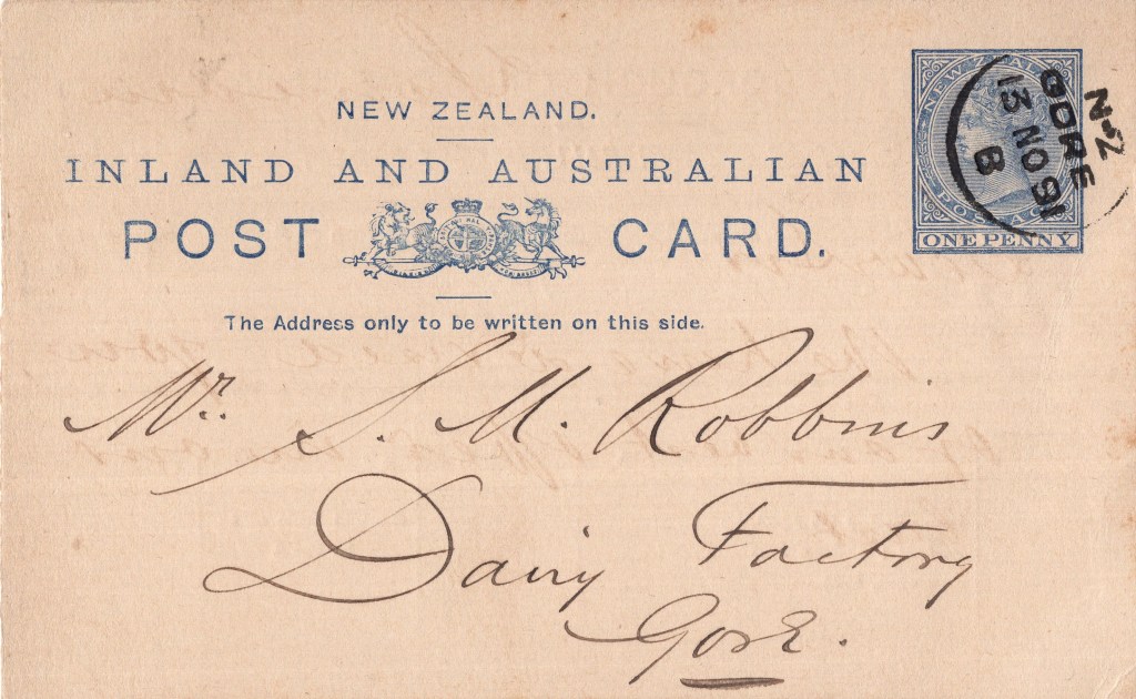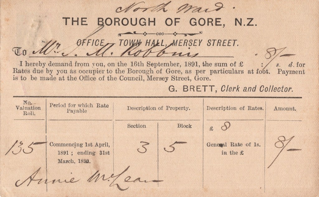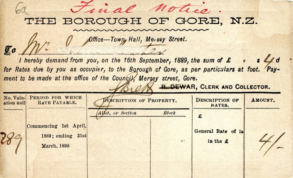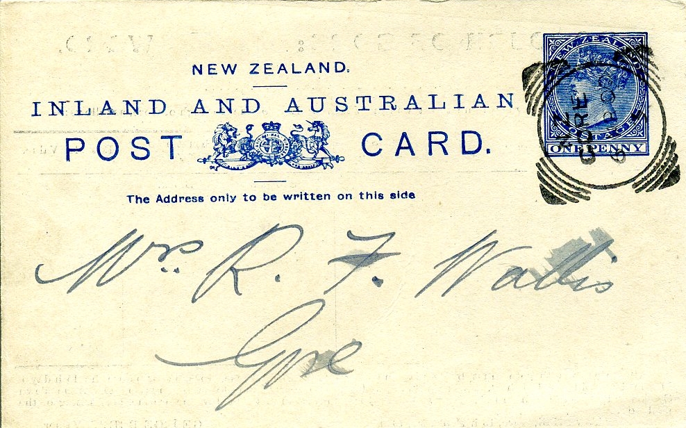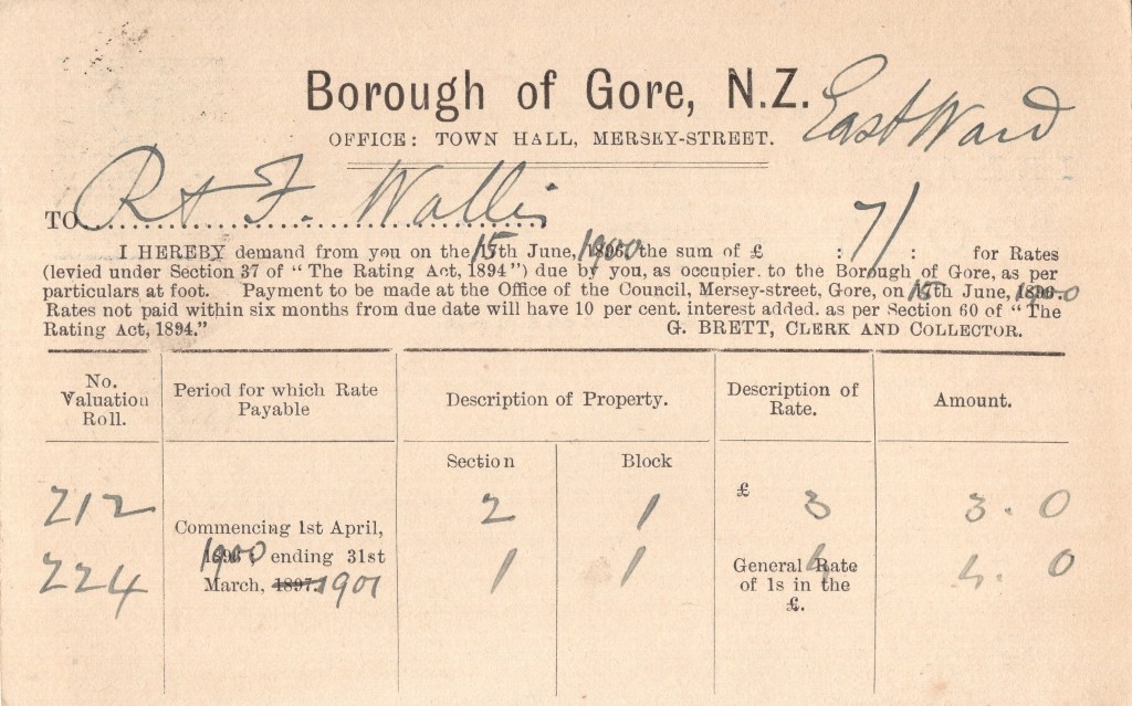 Notes: 1896 rates demand postcard altered by hand for use in 1900