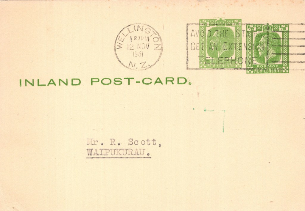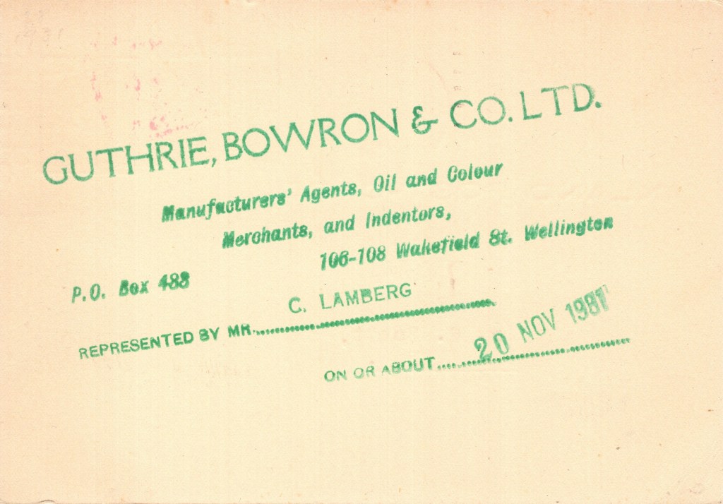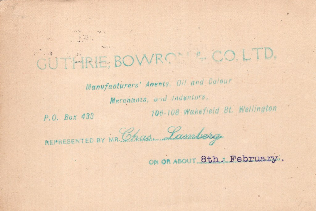 Notes: Rubber hand-stamped, possibly pre-dates printed card, or used as a stop-gap while new cards were being printed.