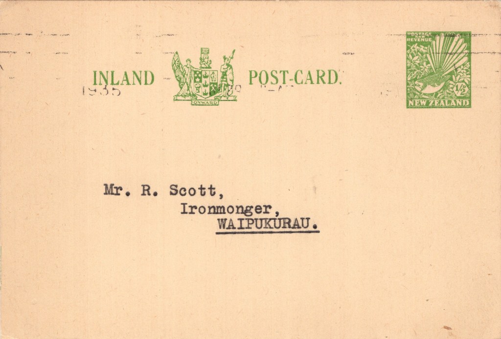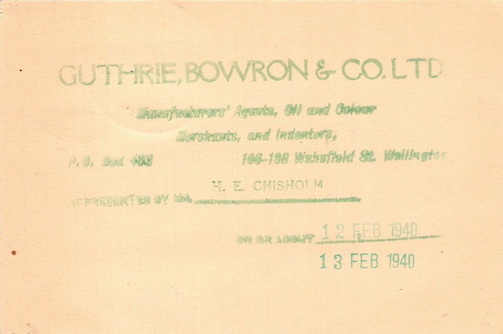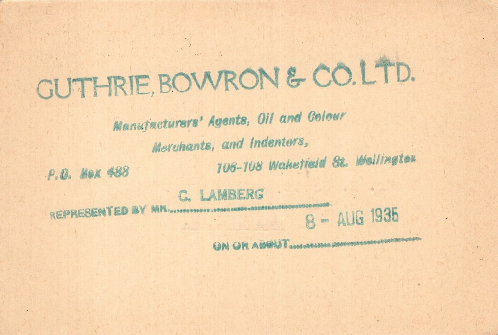 Notes: Rubber hand-stamped, possibly pre-dates printed card, or used as a stop-gap while new cards were being printed.