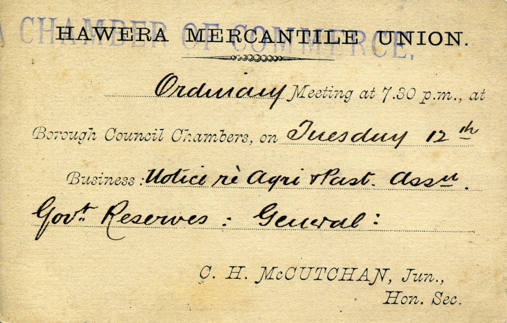 Notes: Printed over for Hawera Chamber of Commerce