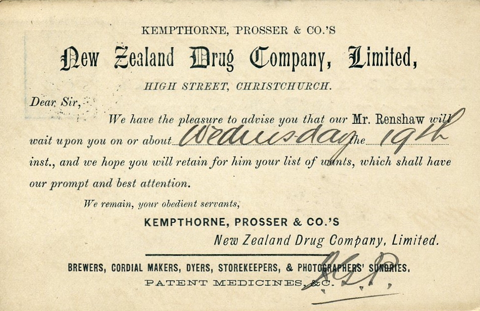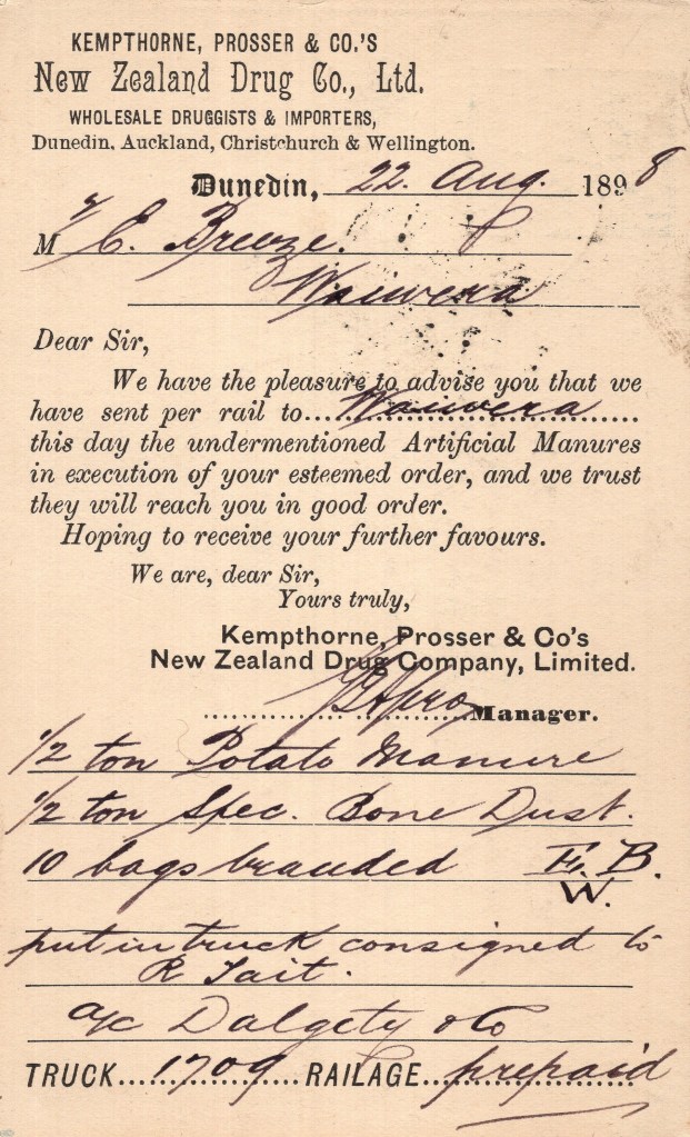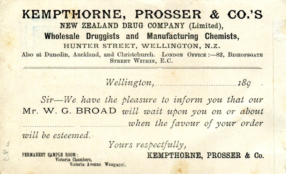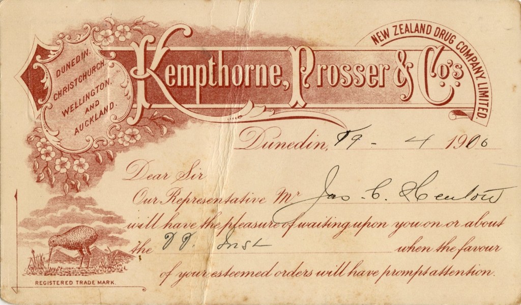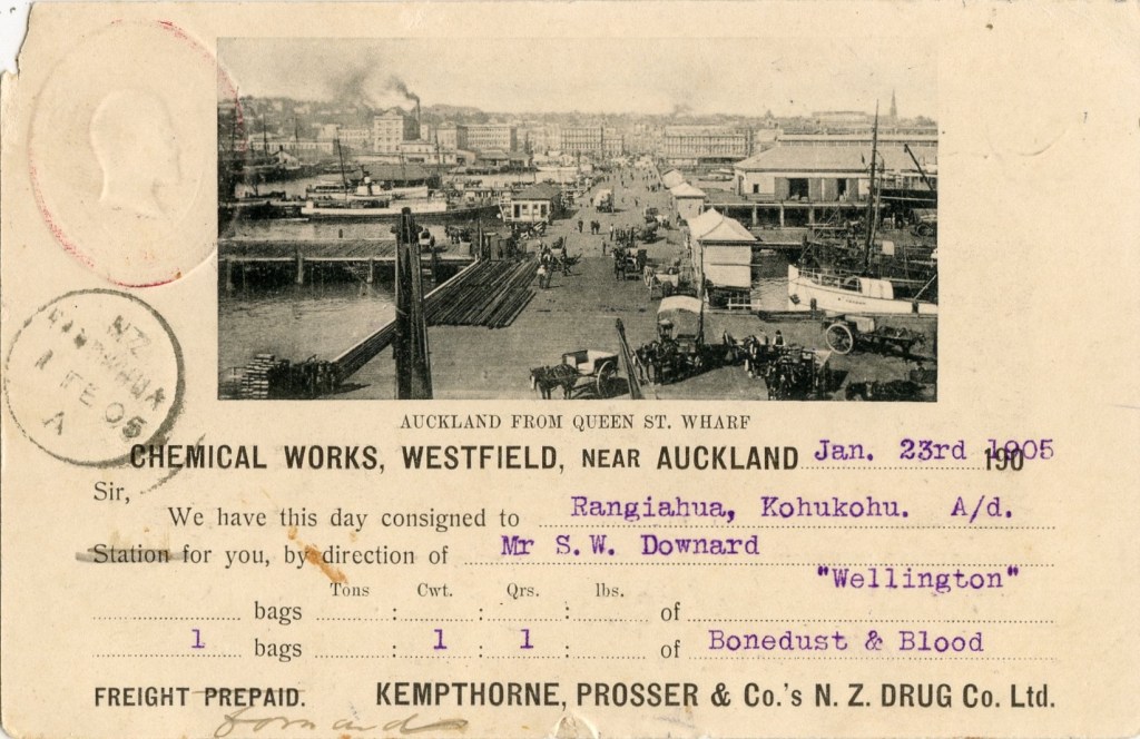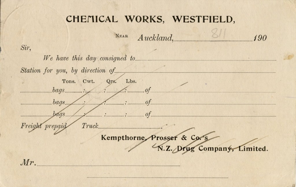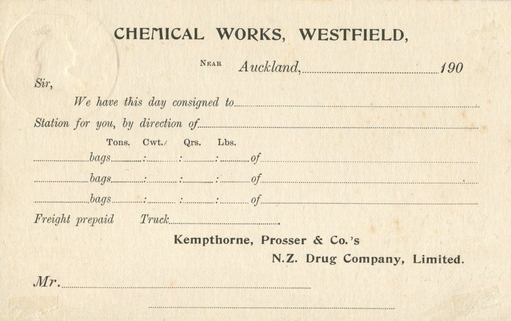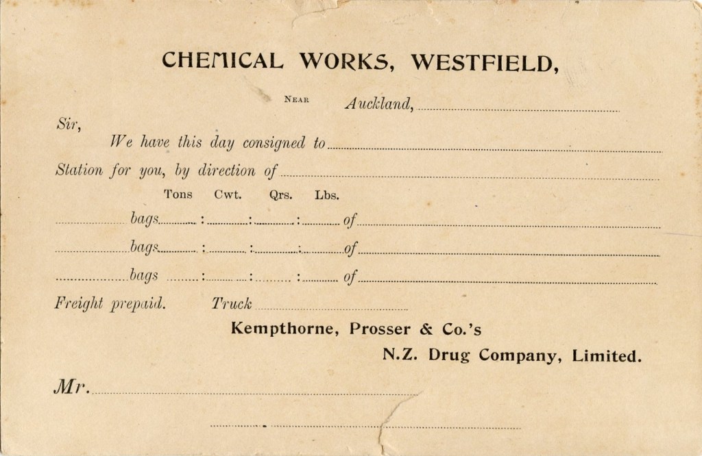 First established in 1870, Kempthorne Prosser & Co was New Zealand’s leading drug and fertiliser manufacturer until they exited the market in 1978. The company operated four large chemical works as well as a number of offices and warehouses across New Zealand.
