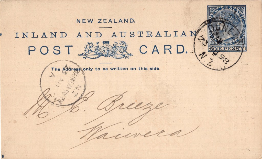 Notes: The only recorded example. In his 1988 catalogue R. D. Samuel noted that a printing of ½d cards was undertaken in 1908, though none had been seen. This example is the discovery example and the only one currently recorded.