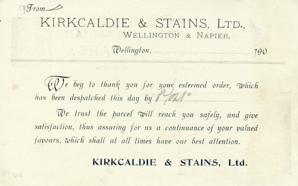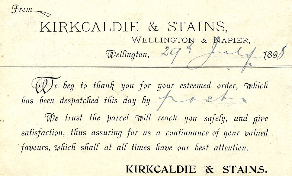 The department store of Kirkcaldie & Stains was established in Wellington in 1863 by Scotsman John Kirkcaldie and Englishman Robert Stains.