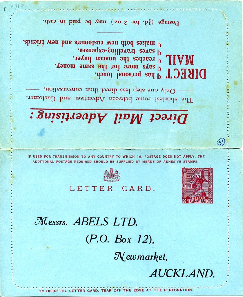 While postcards appear to have been the most commonly used item of postal stationery for private printings a small number of lettercards have also been recorded.