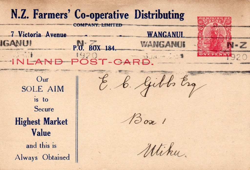 Notes: Printed for Wanganui. This card is much rarer than the Wellington cards and only two examples, both used, have been recorded.