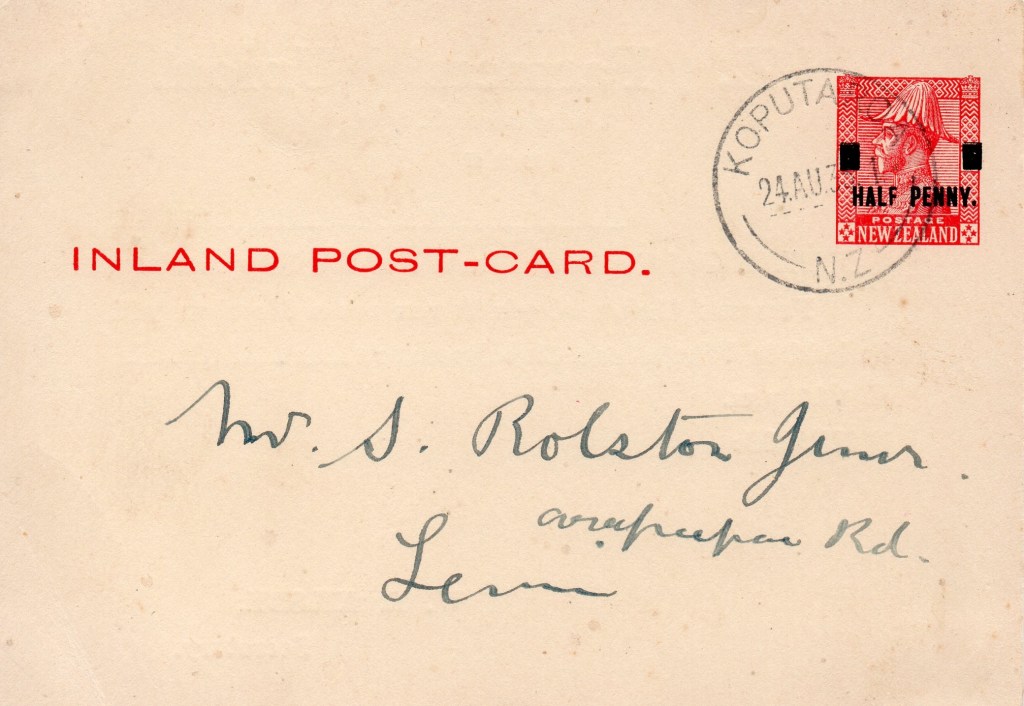 Card: KGV ½d Fantail (Samuel: AD.1a)