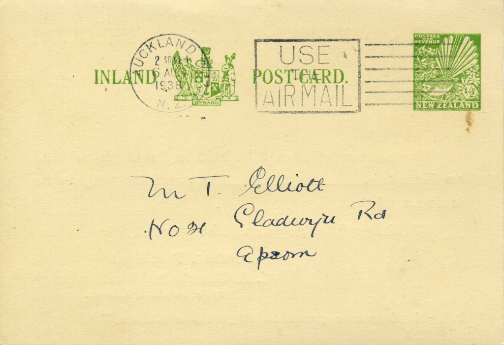 Card: Fantail ½d Green (Samuel: AD.1a)