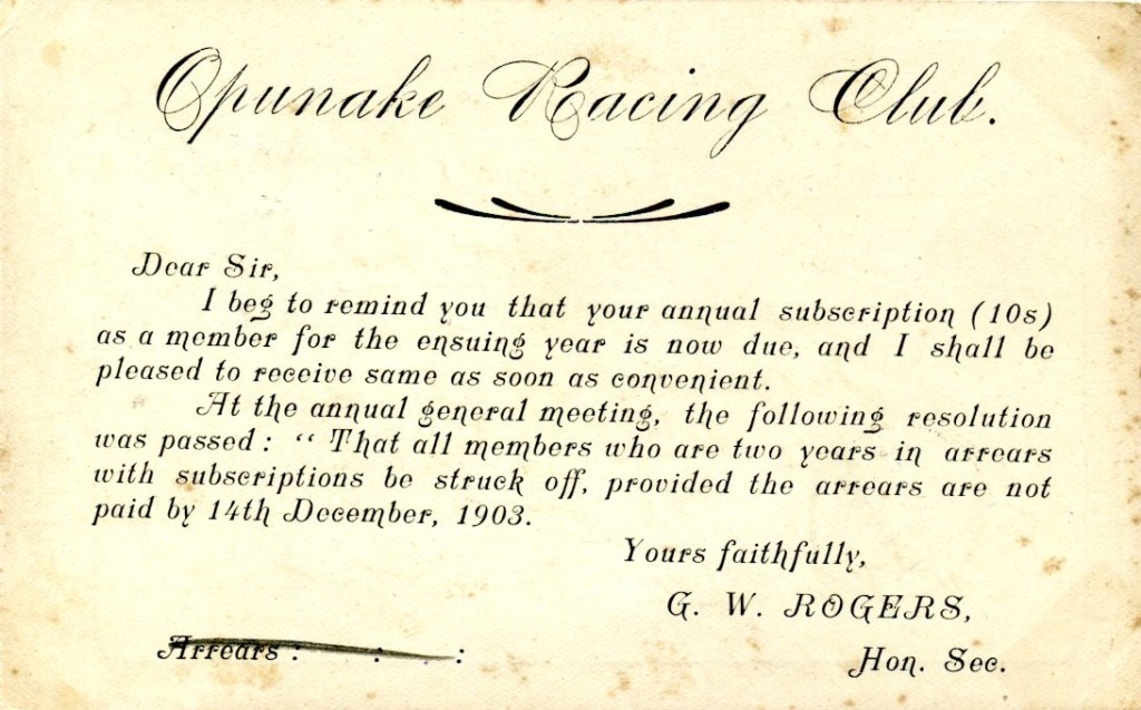 Opunake Racing Club was established in 1886 and continued for 124 years until it merged with Taranaki Racing Club to form Taranaki Thoroughbred Racing.