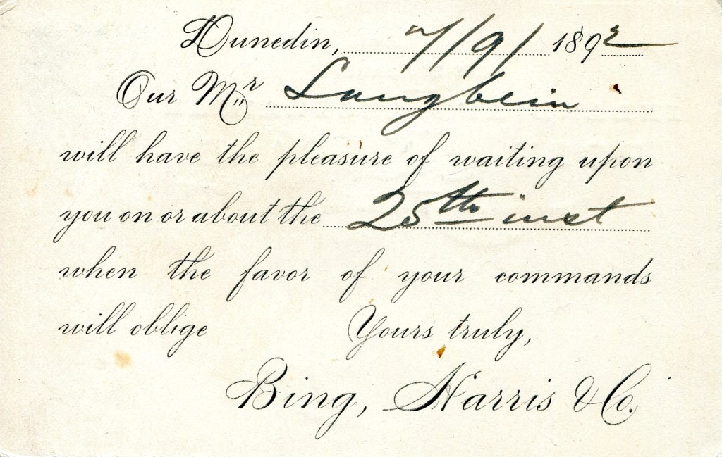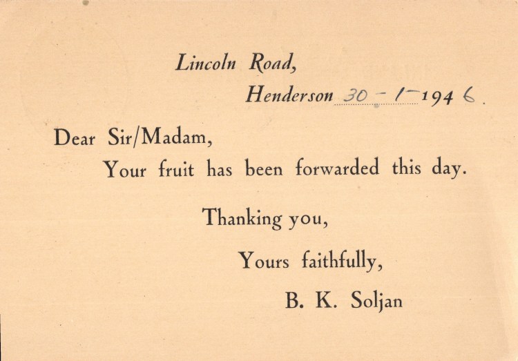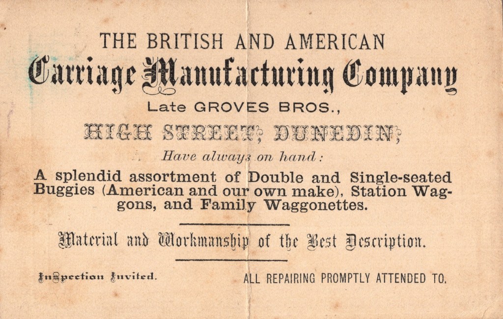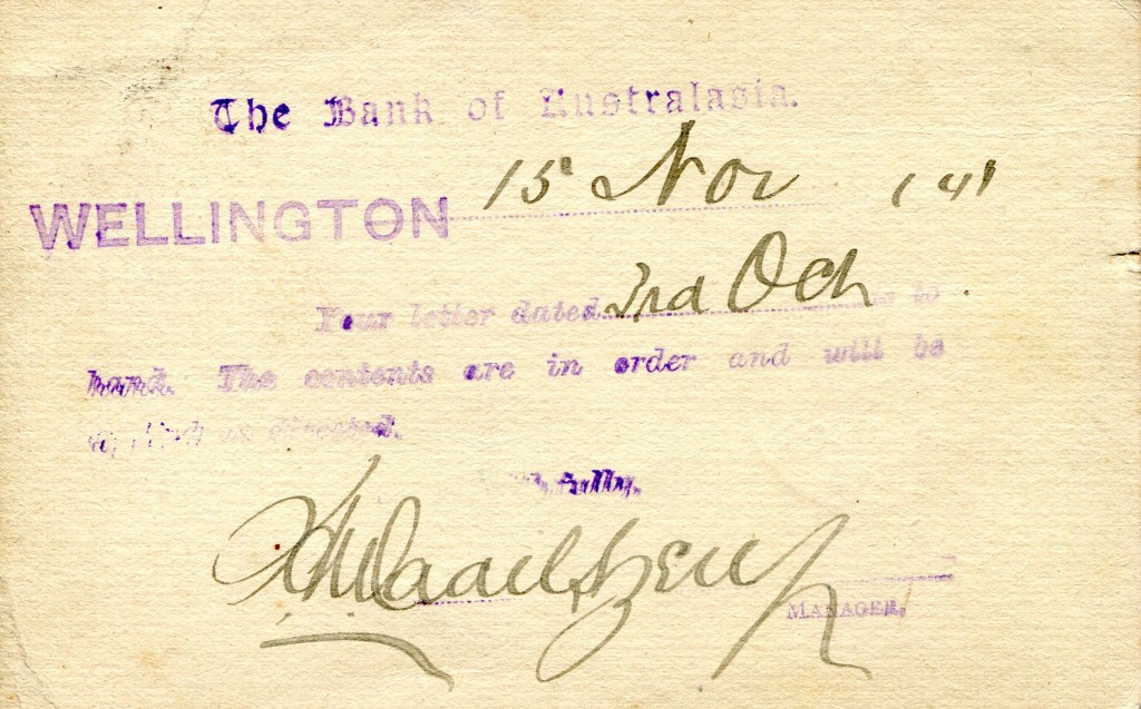 Privately Printed – B B. K. Soljan – Fruit Seller B. M. A. Conference – Anaesthetic Section B. R. Homersham Ltd. Bales & Hally Ballins Industries Ltd. Bank of Australasia Bank of New Zealand Bank of New Zealand – Invercargill The Bay of Plenty Justices of the Peace Association (Inc.) Bay of Plenty Wine Co. Beale & Davies – Agents for Hudson & Co. and Furness & Co. Beckett Sterling Ltd. Belford Mills Co. Bendigo Gold Mining Company Bing, Harris & Co. Birkenhead Progressive League Blenheim Church of the Nativity Blenheim Volunteer Fire Brigade Bond & Bond Ltd Bovisan Pty. Bowman & Son Auctioneers Bright Star Products Ltd. The British and American Carriage Manufacturing Company (Late Groves Brothers) British Dominion Films British Drama League (Taupo Area) British – Israel World Federation Brookbanks Ltd Brown Bros. & Geddes, Ltd. The Browns Lime Co., Ltd. Buller County Council – Rates Demand Bush & Southern Hawke’s Bay Veterinary Club Butterworth Brothers Byrne & Co.