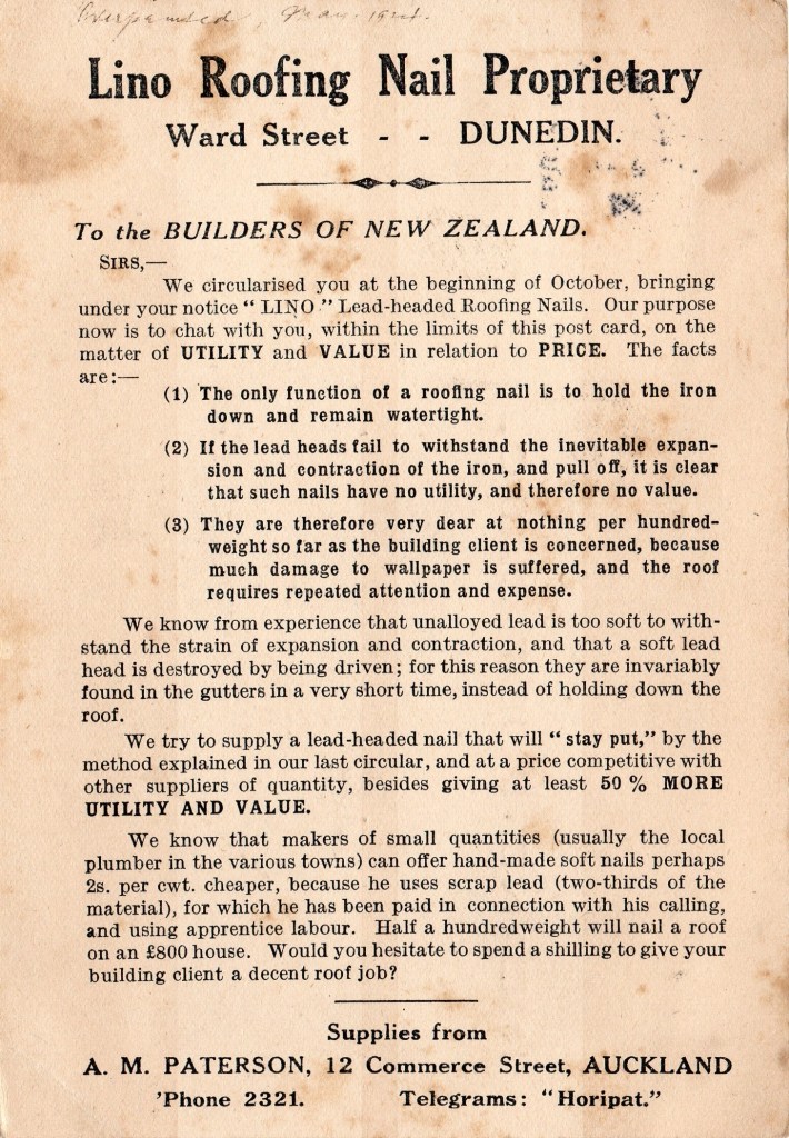 Privately Printed – L L. D. Nathan & Co. L. J. Purdie & Co. Ltd Lange & Thoneman The League of Mothers League of Nations – Wanganui Branch Leonard Fullerton Ltd. Leithfield Vicarage Levels Road Board – Rates Demand Lever Brothers (New Zealand) Limited Levin & Co. The Leyland O’Brien Timber Co. Ltd. Lightband Allan & Co. Lino Roofing Nail Proprietary The Linwood Club Lloyd and Richards London Book Club Longview Orchard Loyal Napier Lodge Loyal Whangarei Lodge, No. 6431 Lyon & Blair Lyttelton Times Company