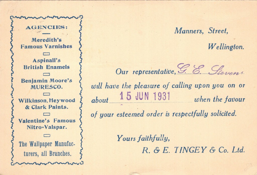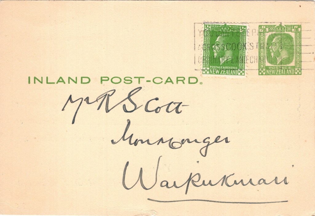 Notes: Very few examples recorded. A single printing of 996 cards was produced in 1909. This card illustrates very well the Post Office Stamped to Order service. The reverse of the card has been printed ‘C.M. Banks, Ltd.’ at the base. All of the inscriptions on the card were printed by the Wellington printer and lithographer C. M. Banks with the postage die applied by the Government Printing Office.