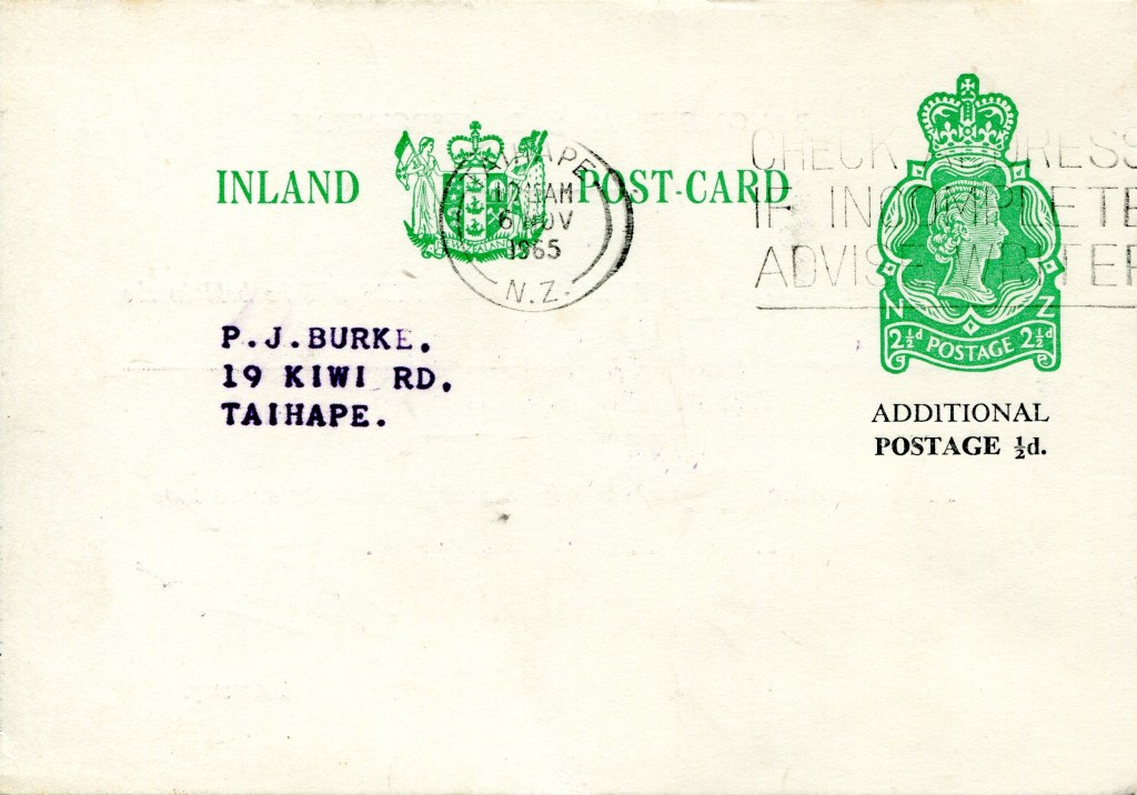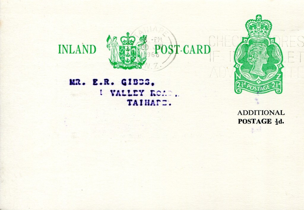 Card: QEII 2½d + ½d Green (Samuel: AF.6a)