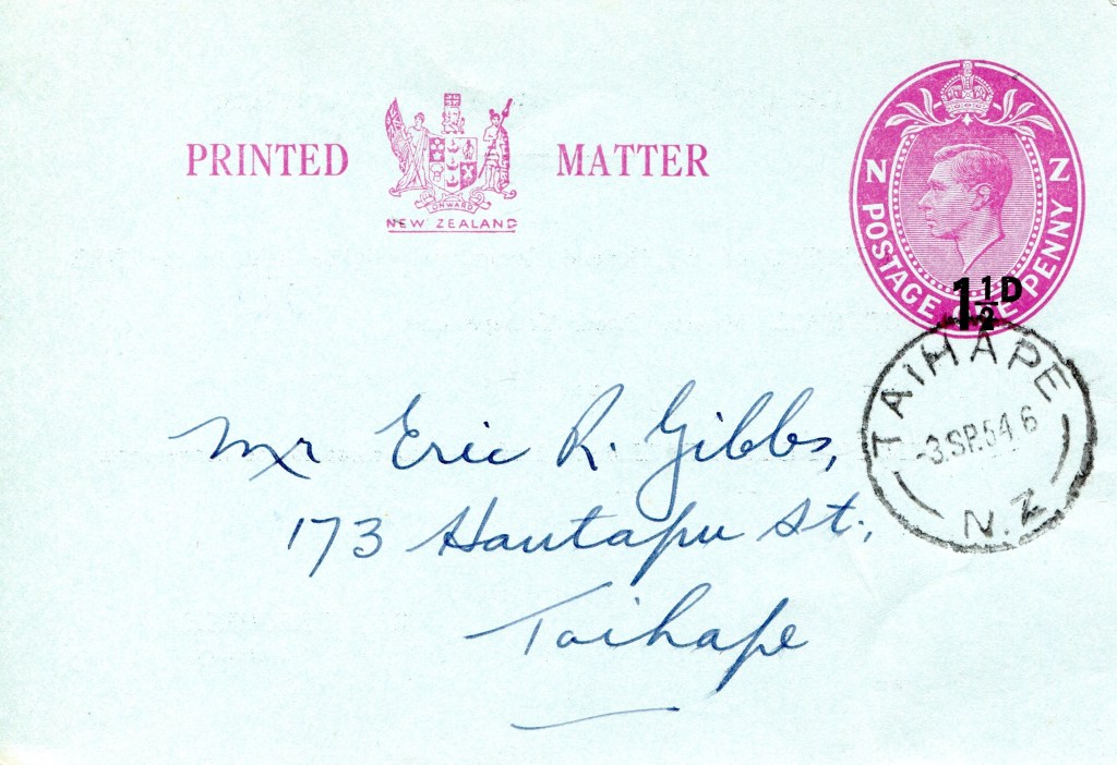 Card: KGVI 1½d on 1d Mauve (Samuel: AV.1a)