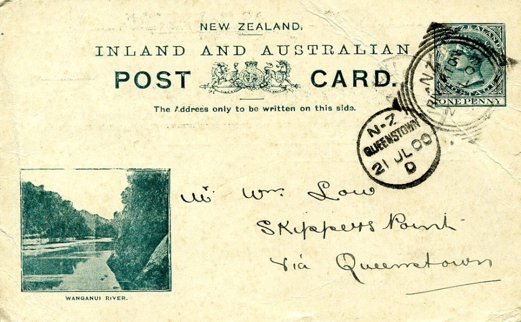 Card: QV 1d Green – Wanganui River (Samuel: AA.9a(h))