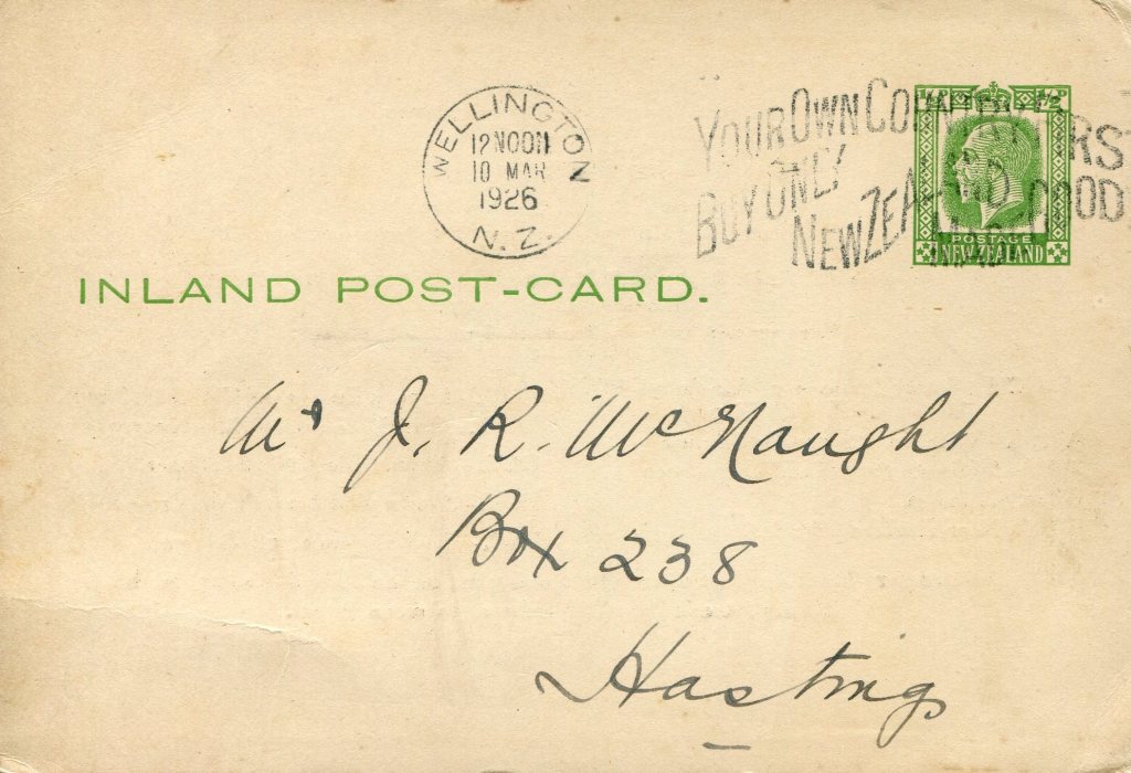 Notes: Potentially stock of cards returned to the post office for revaluing following the drop in postage rate from 1d to ½d.