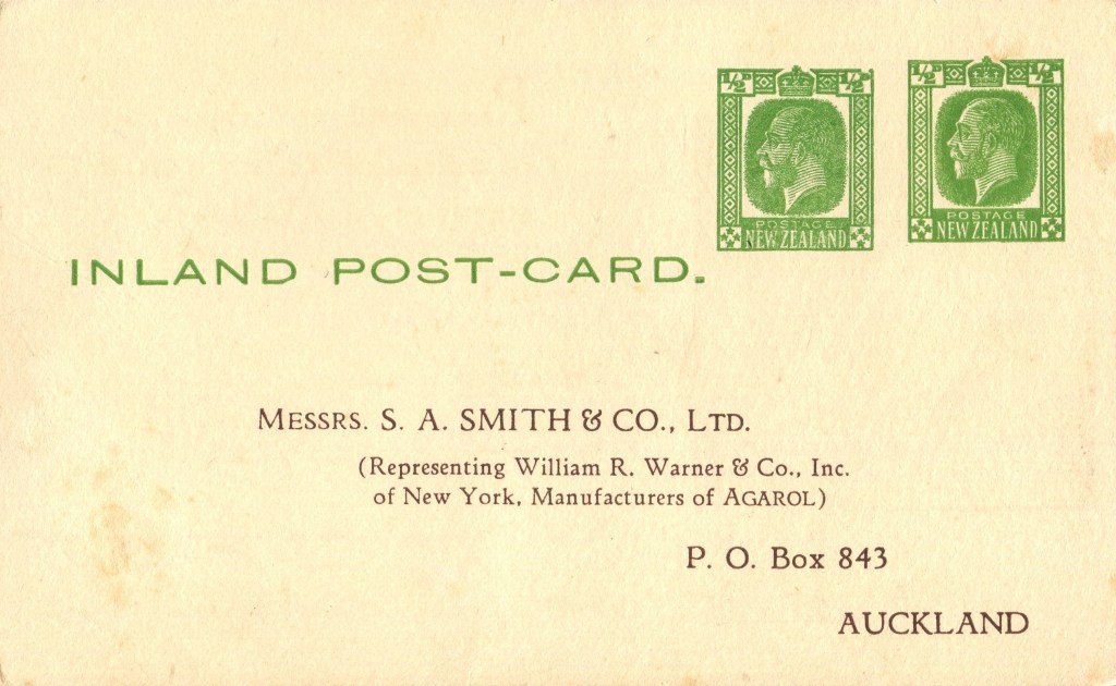 Notes: An unusual card, possibly a trial/test printing. Covered in ink stains and with various minor corrections carried out by hand. Also noted in ink on front and back 1100 in circle, potentially the number of cards ordered.