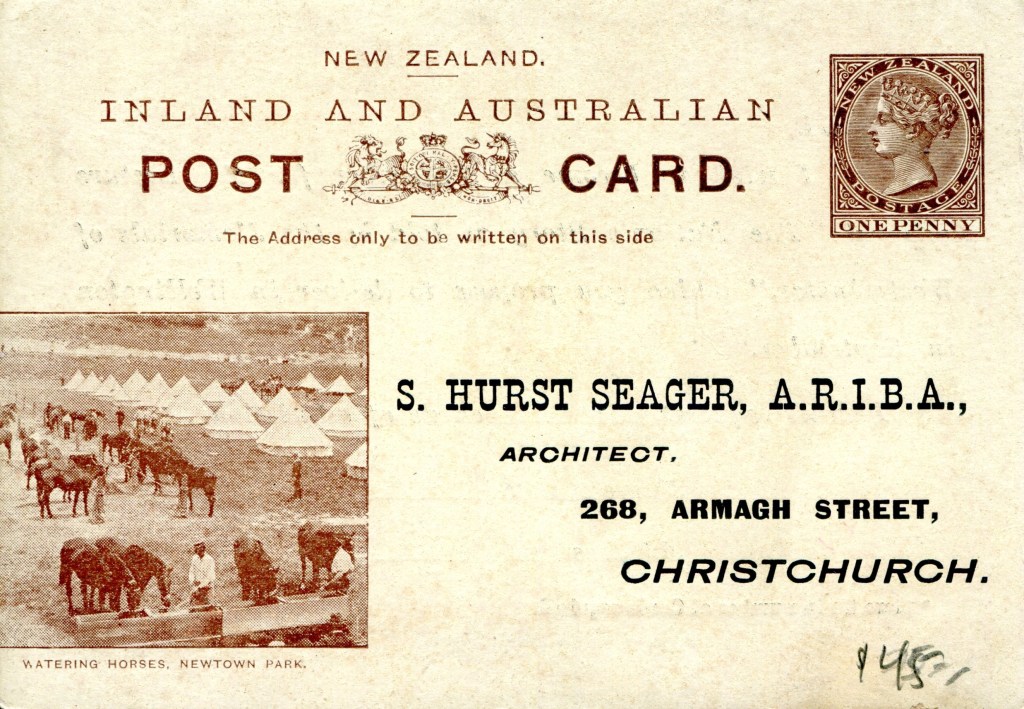 Card: QV 1d Brown – Watering Horses, Newtown Park (Samuel: AA.10b(h))