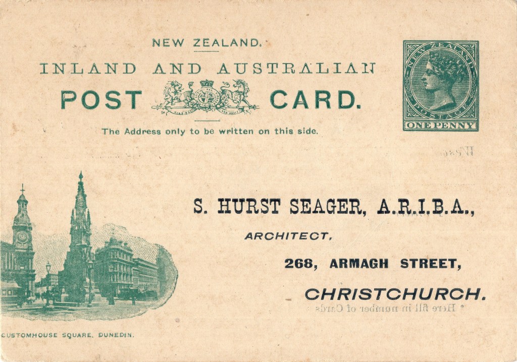Card: QV 1d Green – Customhouse Square, Dunedin (Samuel: AA.9a(d))