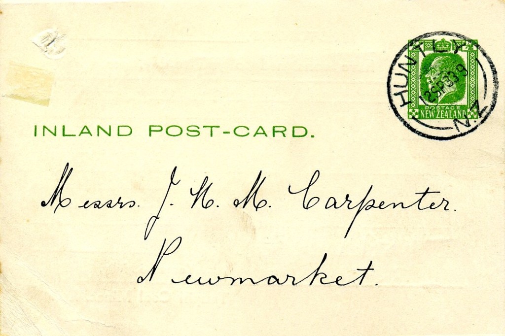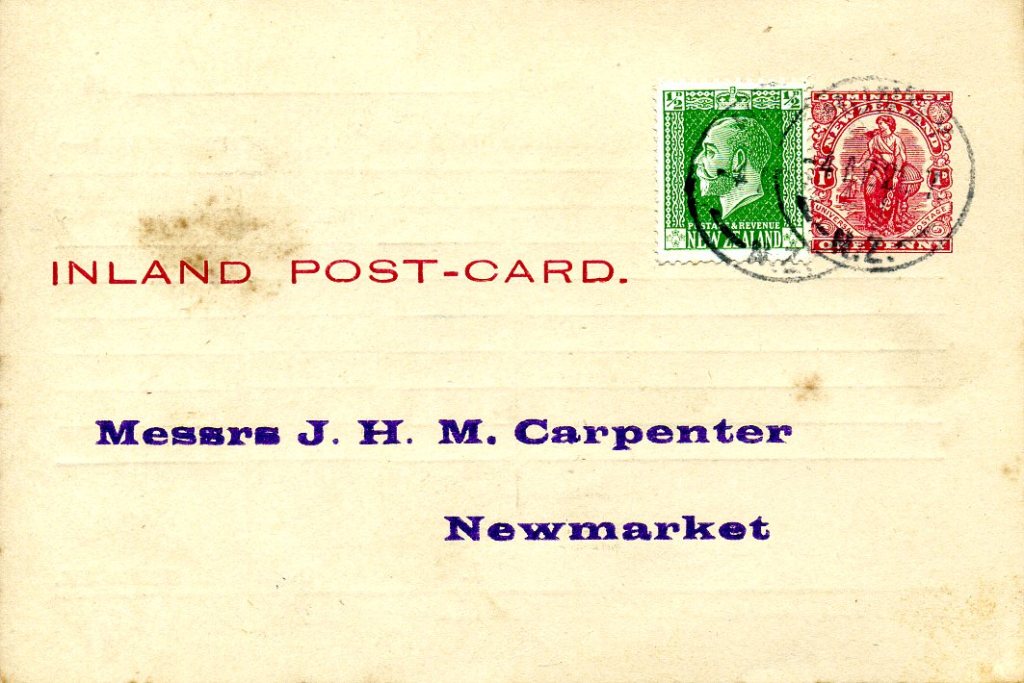 Card: KGV 1½d Yellow-brown (Samuel: AC.4a)