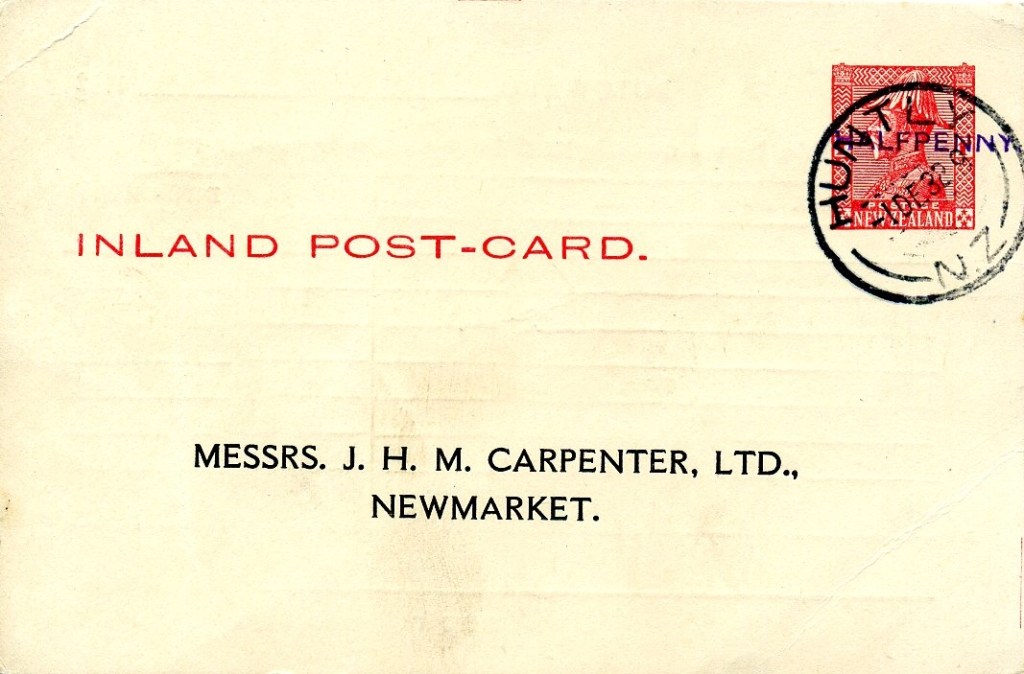 Card: KGV ½d on 1d Carmine (Samuel: AC.22a)