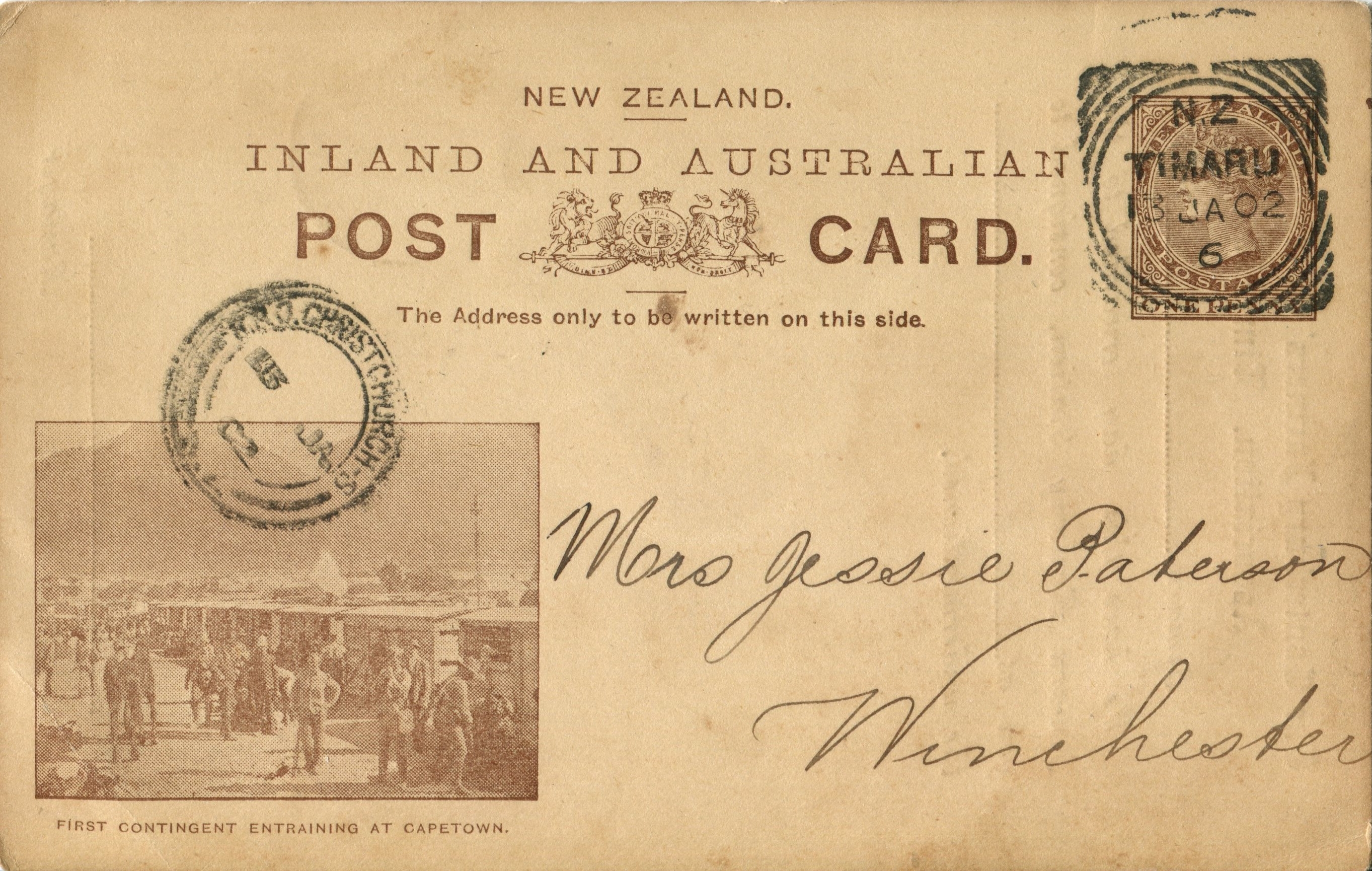 Card: QV 1d Brown – First Contingent Entraining at Capetown (Samuel AA.10c(a))