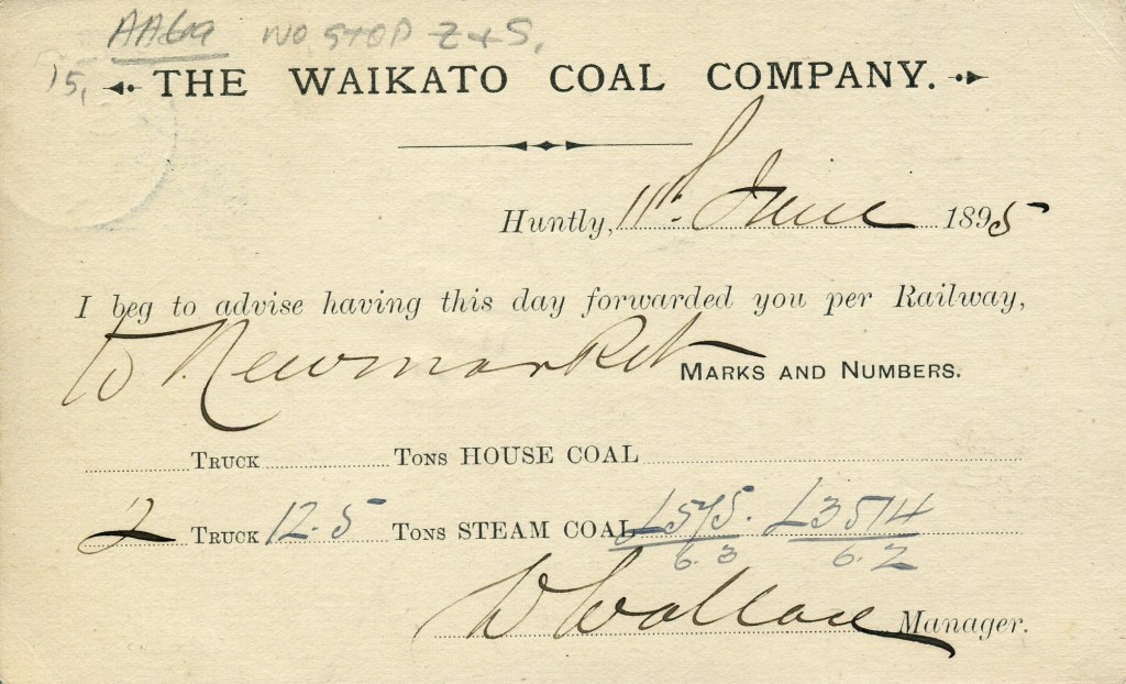 Notes: Card for The Waikato Coal Company following the liquidation of the shipping arm of the company.