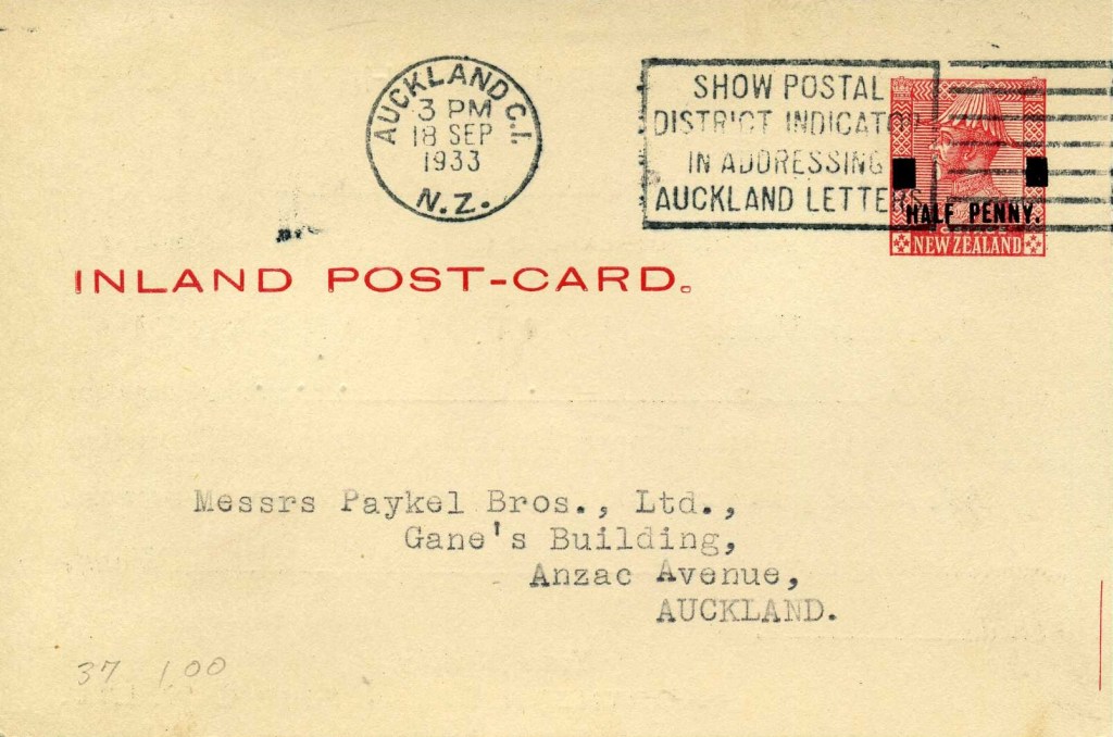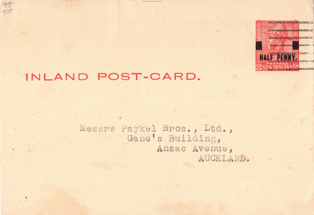 Card: KGV ½d on 1d Carmine (Samuel: AC.24a)