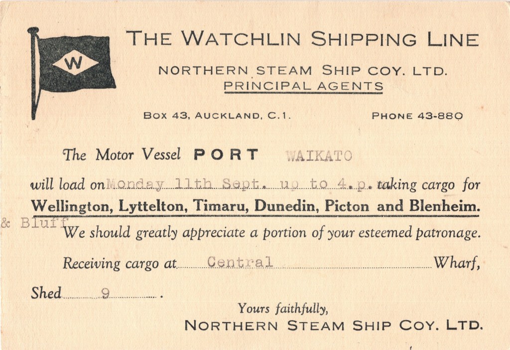 Notes: With name of ship printed.