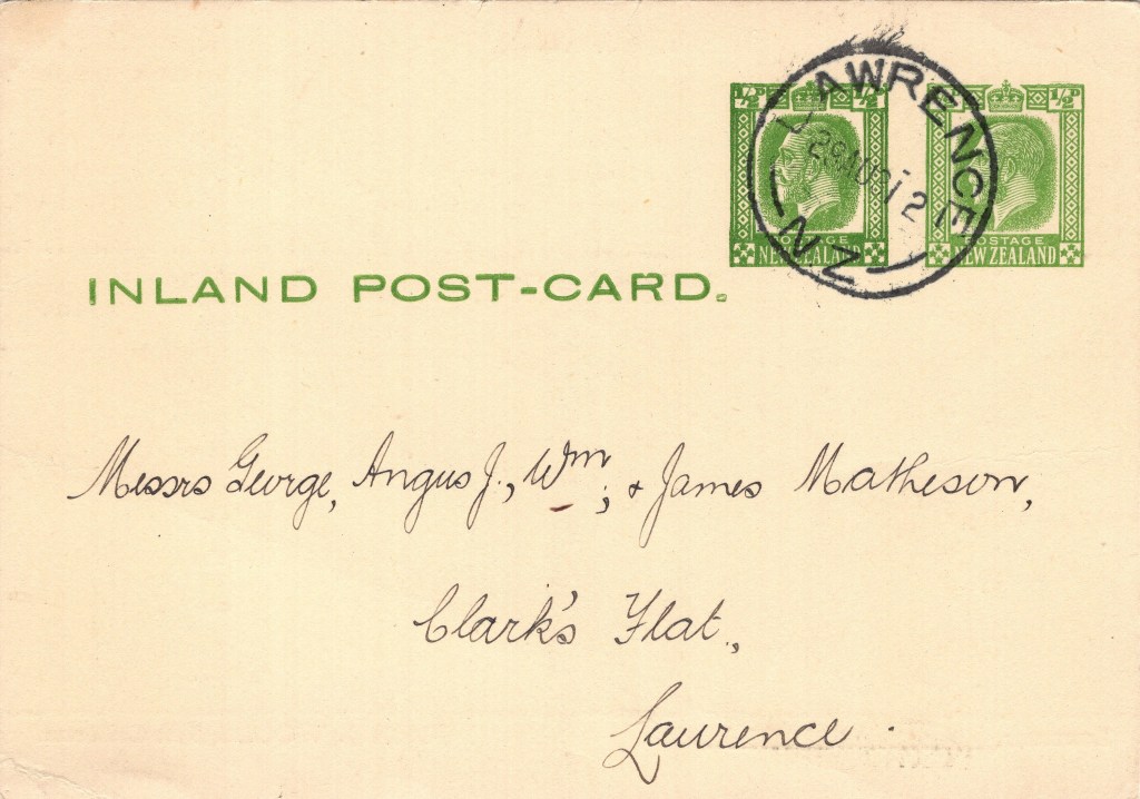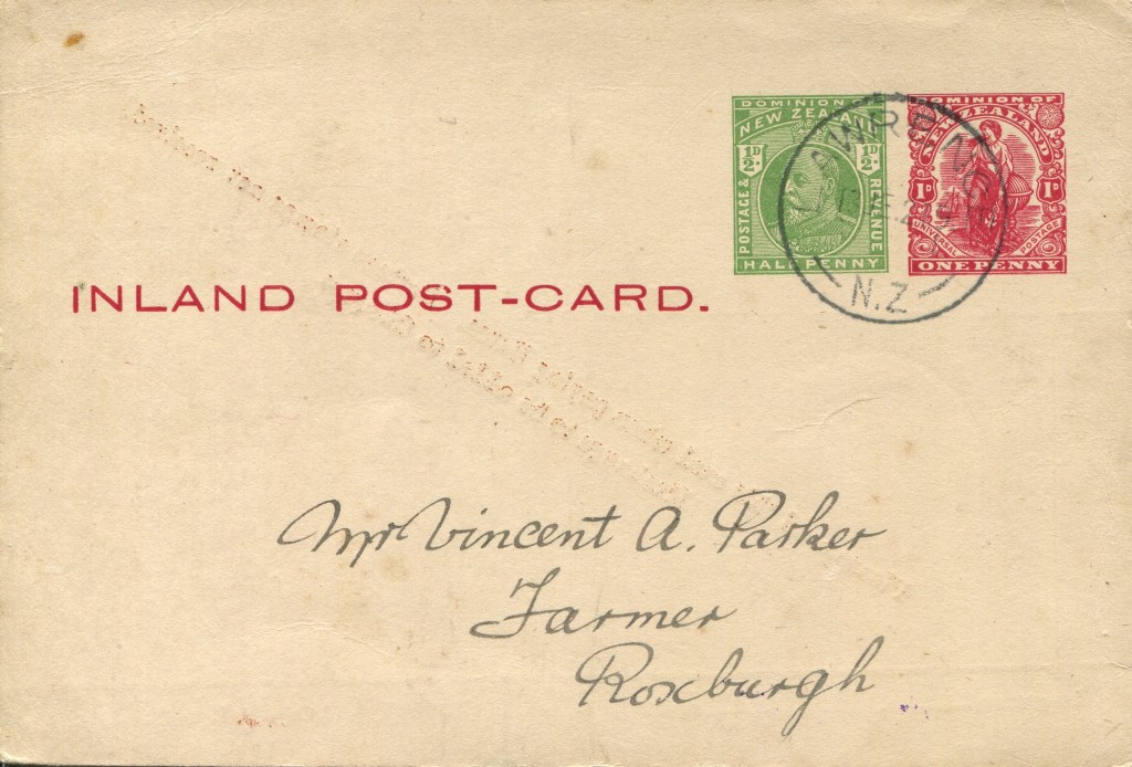 Card: KGV ½d Green + 1d Carmine (Samuel: AC.3a)