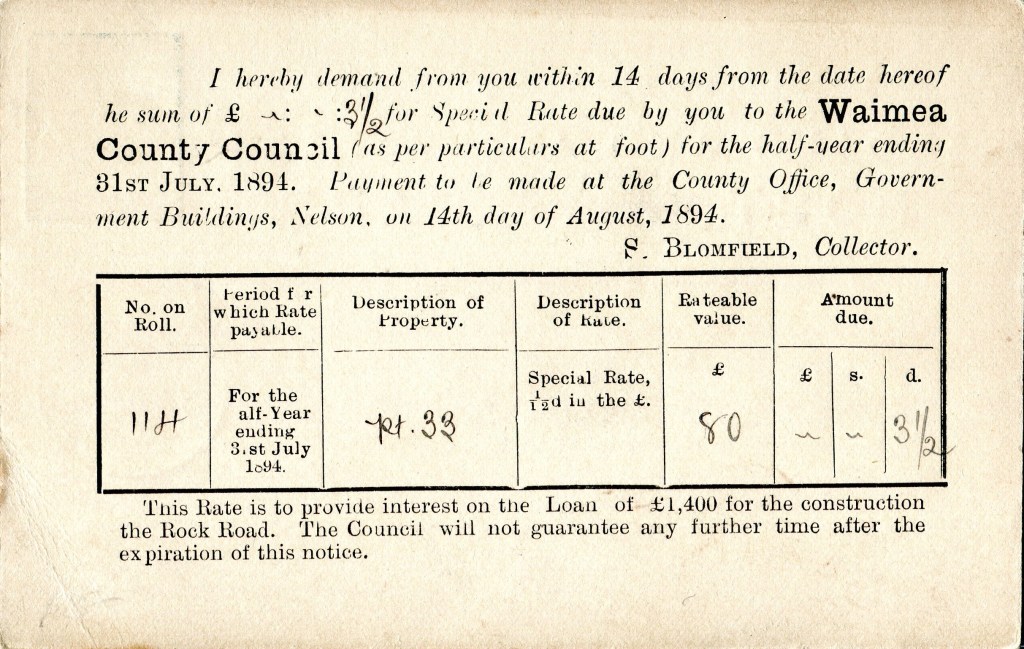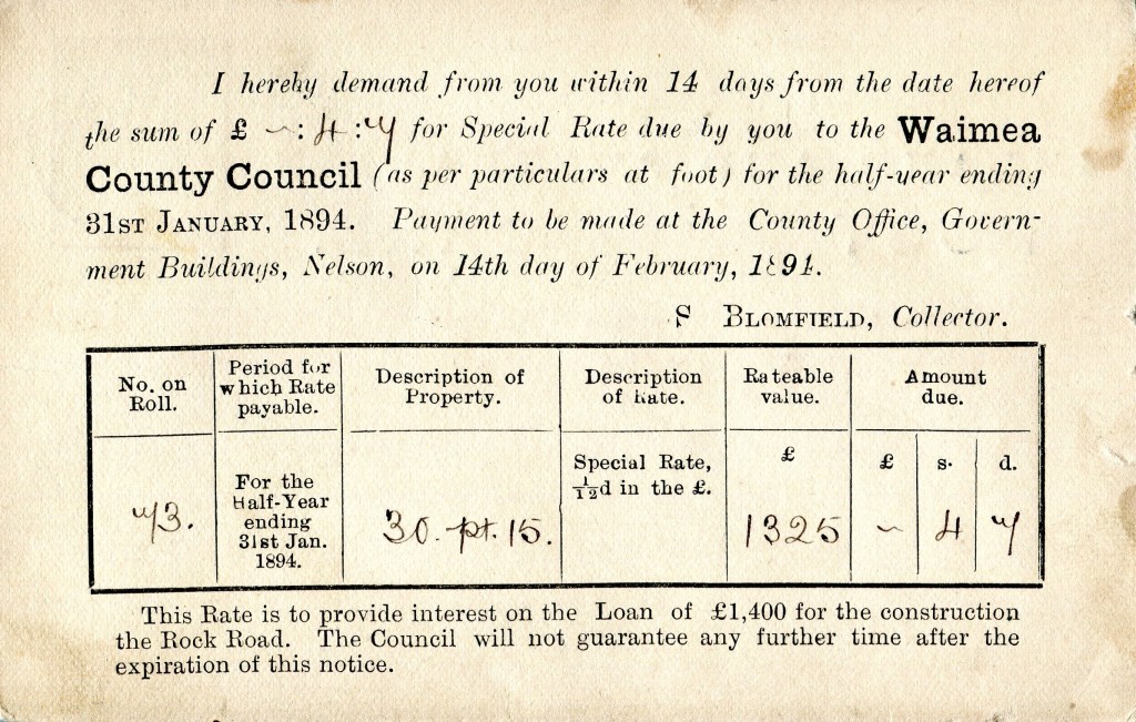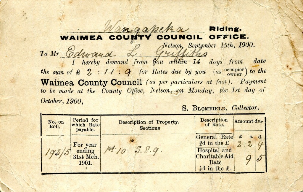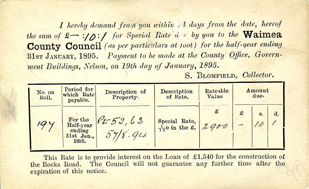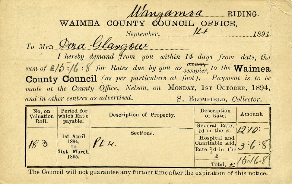 Waimea County Council was established in 1876 and covered the area of the Waimea Plains at the northern end of the South Island, the council offices were located in Nelson. In 1989 The Waimea council area was merged into the new Tasman regional council with its offices at Richmond.