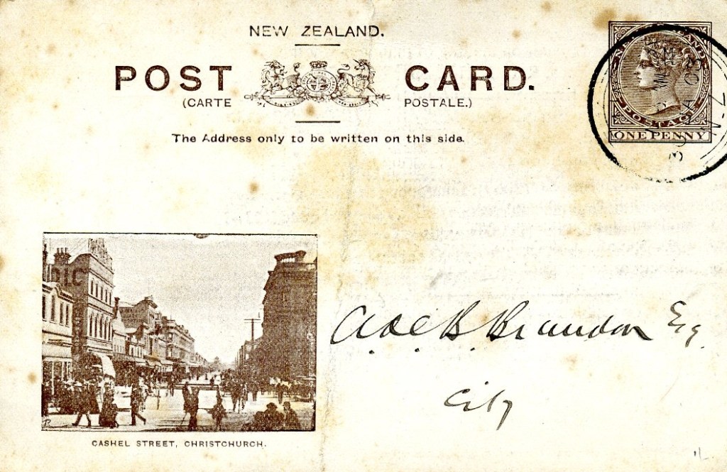 Card: QV 1d Brown – Cashel Street, Christchurch (Samuel: AA.12a(j))