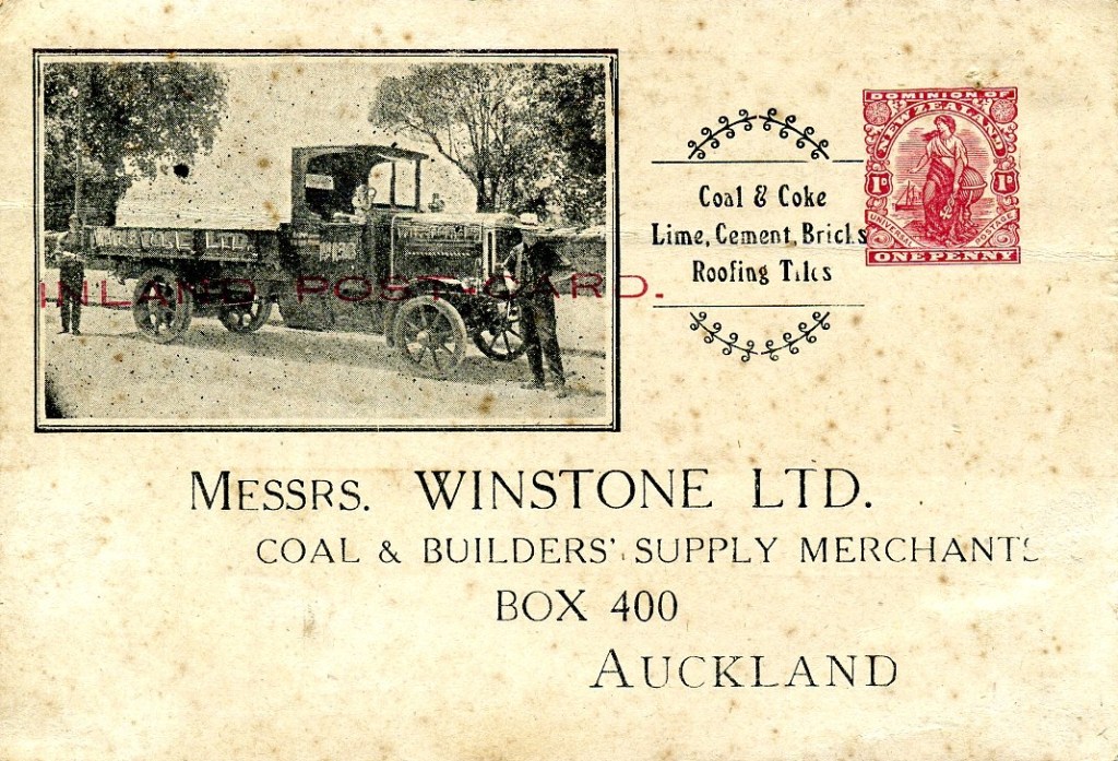 This card is clearly not revalued nor is it not likely to be Printed to Private Order by the Post Office, the ‘Inland Postcard’ inscription can be seen below the printed image. It is possible that this is one of the stock of cards that Winstone Ltd submitted to the Post Office for revaluing in 1924 after the postage rate dropped from 1d to ½d.
