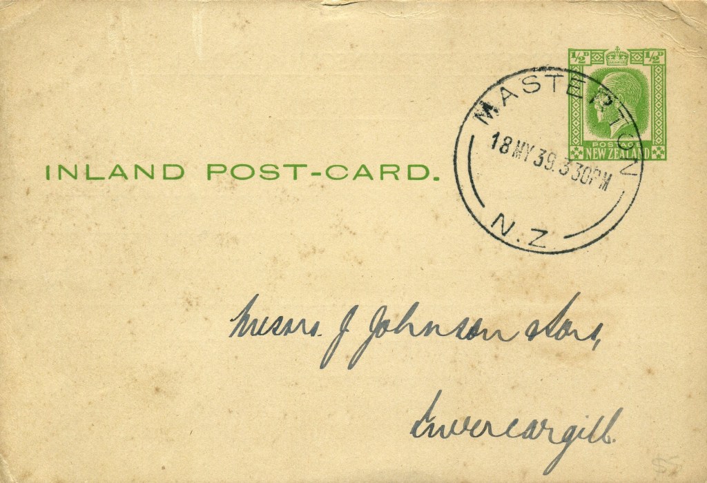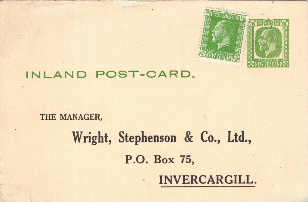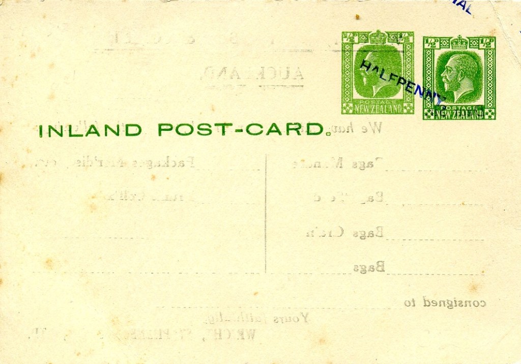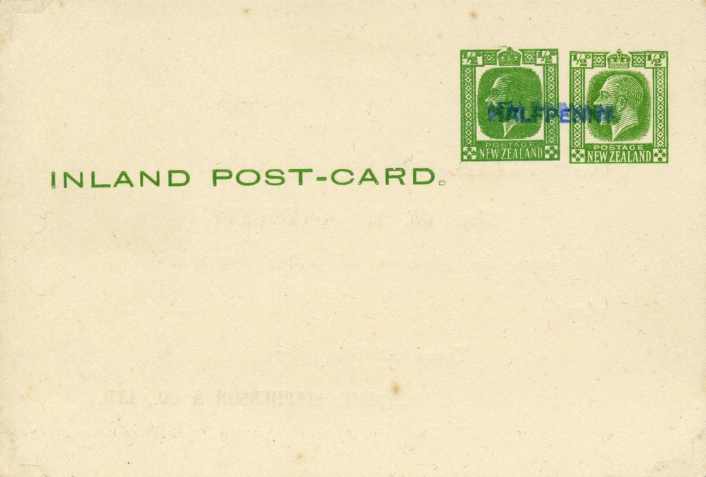 Card: KGV ½d Green + ½d Green (Samuel: AC.15a)